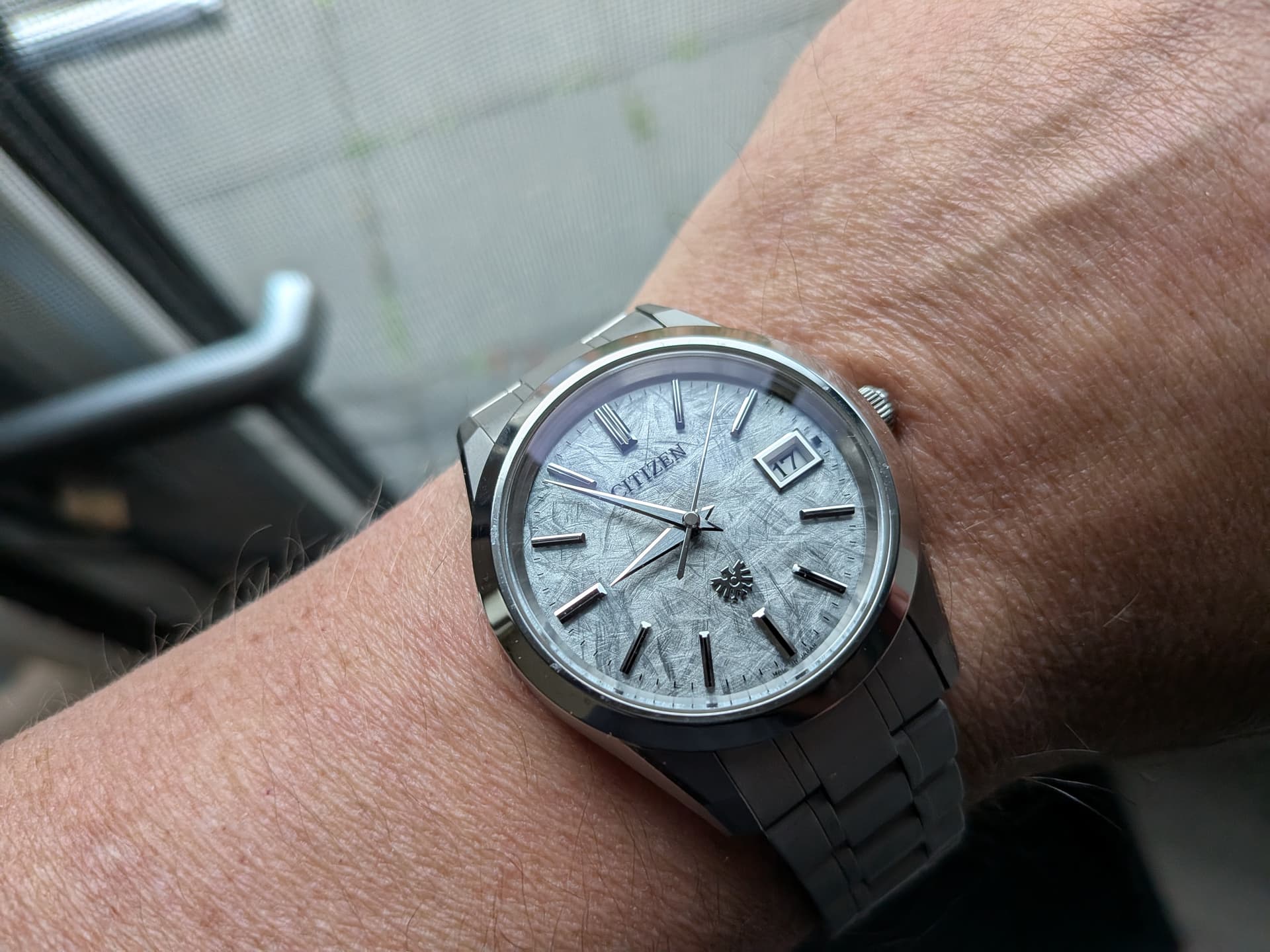 Vriend van me is nu in Japan en daar geven ze die Chronomasters bijna weg… 1200e voor de 40mm zwarte met crowguards, 1600 tot 1800 voor de 38mm met washi dials (AQ4100)… Na aftrek VAT + CC fees…