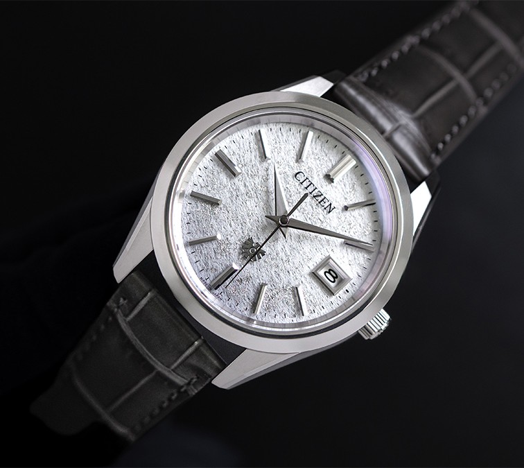 The AQ4100-22A is inspired by an early winter morning scene, and has a Tosa washi paper, on which platinum foil is scattered like snow using the traditional technique known as sunagomaki. The dial has a gray gradient printed top plate that adds to the winter feeling of the model.
