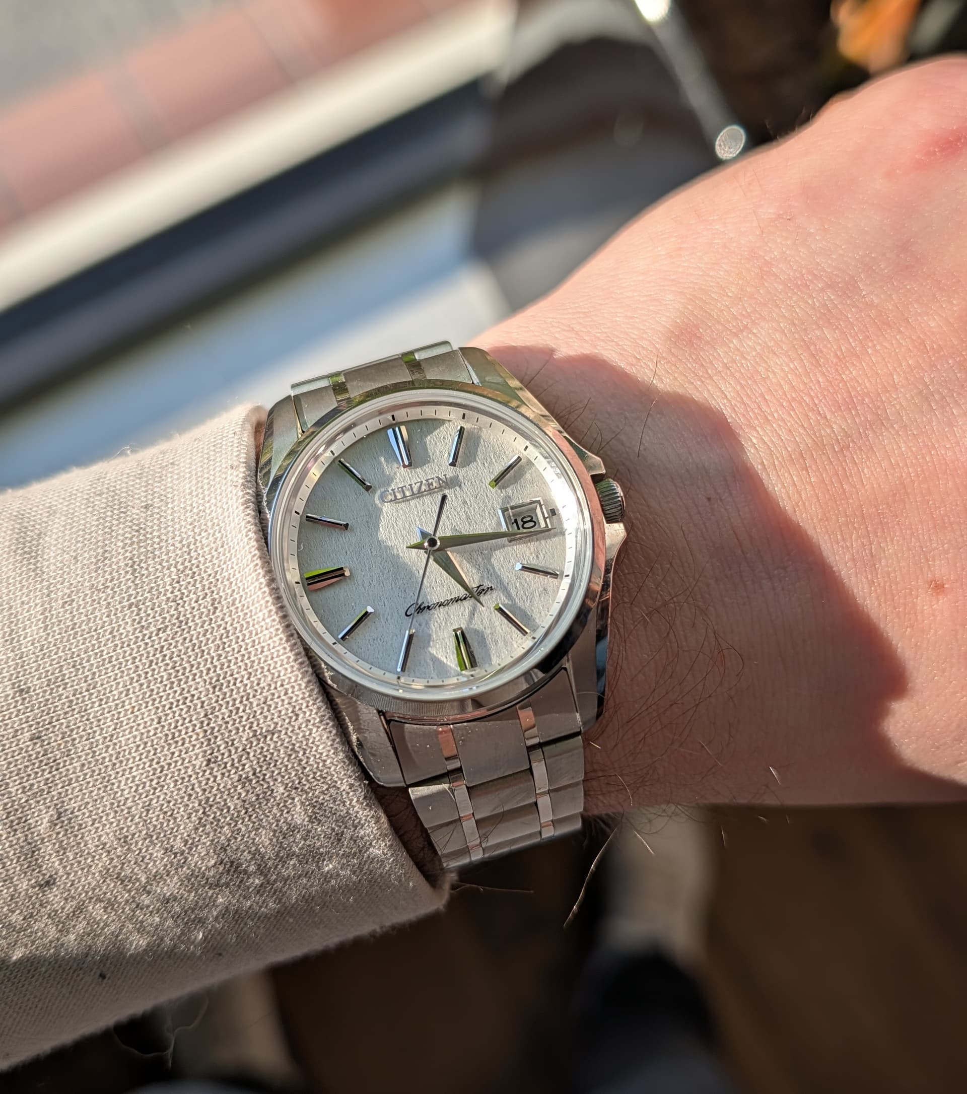 Een heel slecht belichte foto die dit mooie horloge geen eer aan doet. Morgen maar eens betere foto’s maken in daglicht.