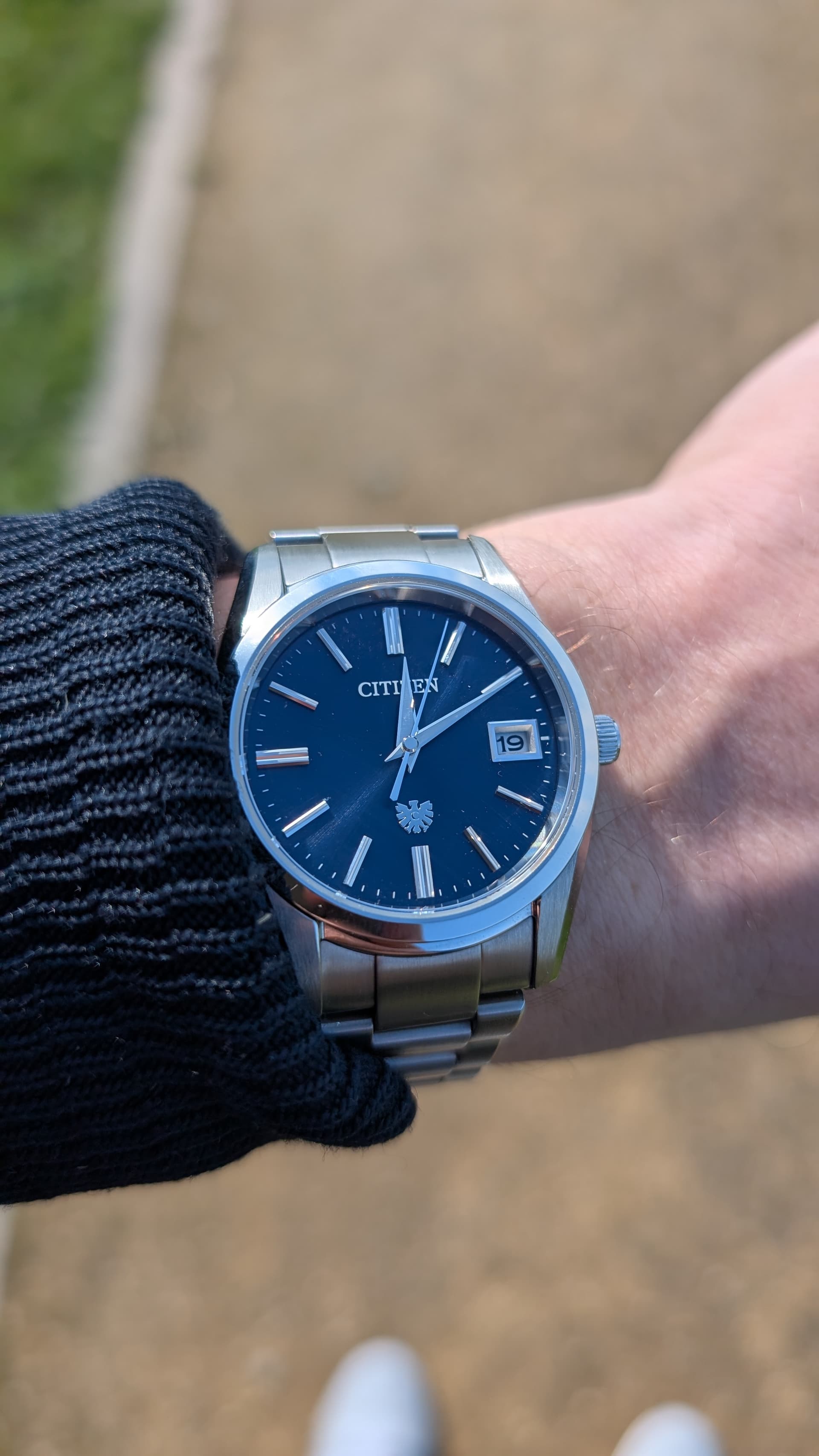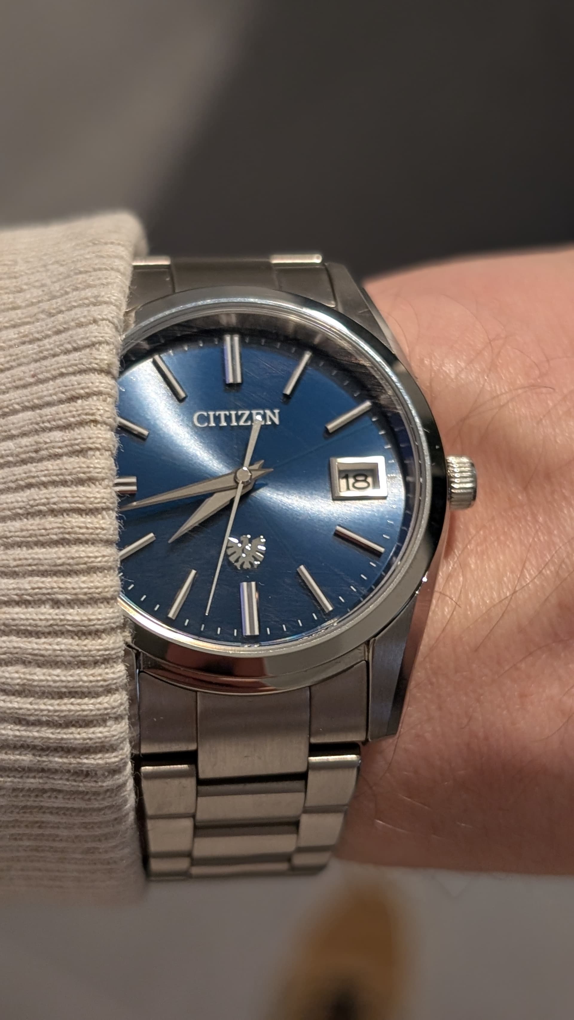 Op deze foto komt het horloge pas goed over hoe het er in het echt uitziet. Echt een mooie zachte kleur blauw.