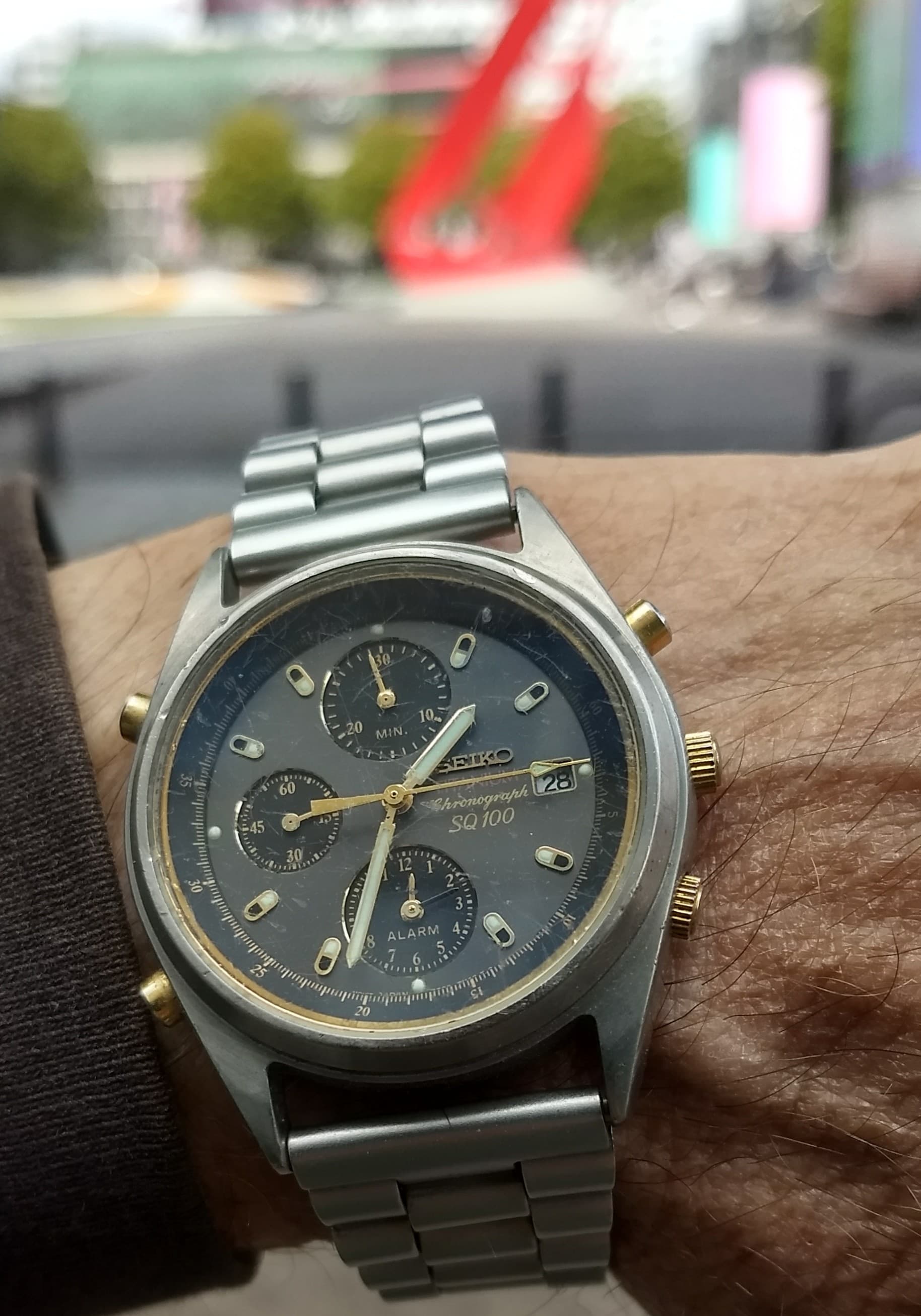 Deze titanium Seiko is één (vind ik) mooie chronograaf uit de serie - 7T32 - die nogal lastig lijkt te dateren. 80’s en 90’s worden genoemd maar ook vroeg 2000 schijnt te kunnen.
