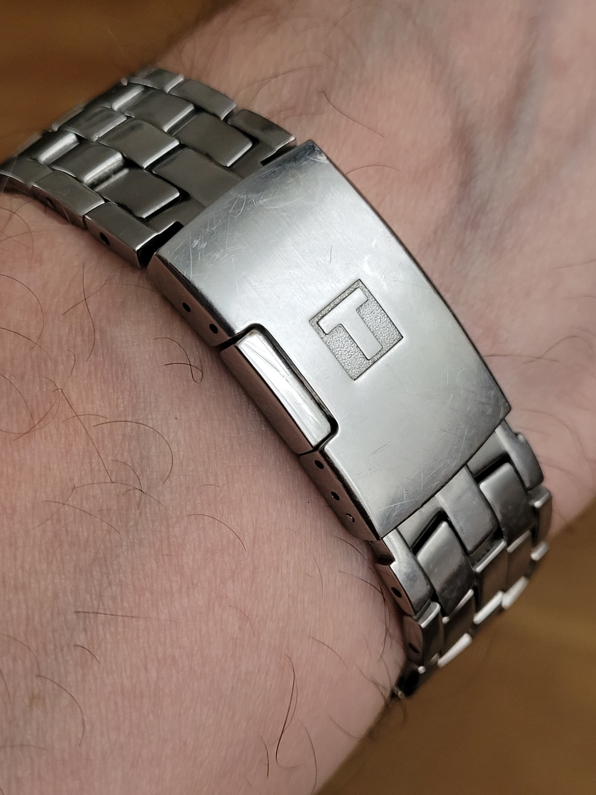 Origineel geleverd op leer, later een originele Tissot stalen band erop laten zetten.