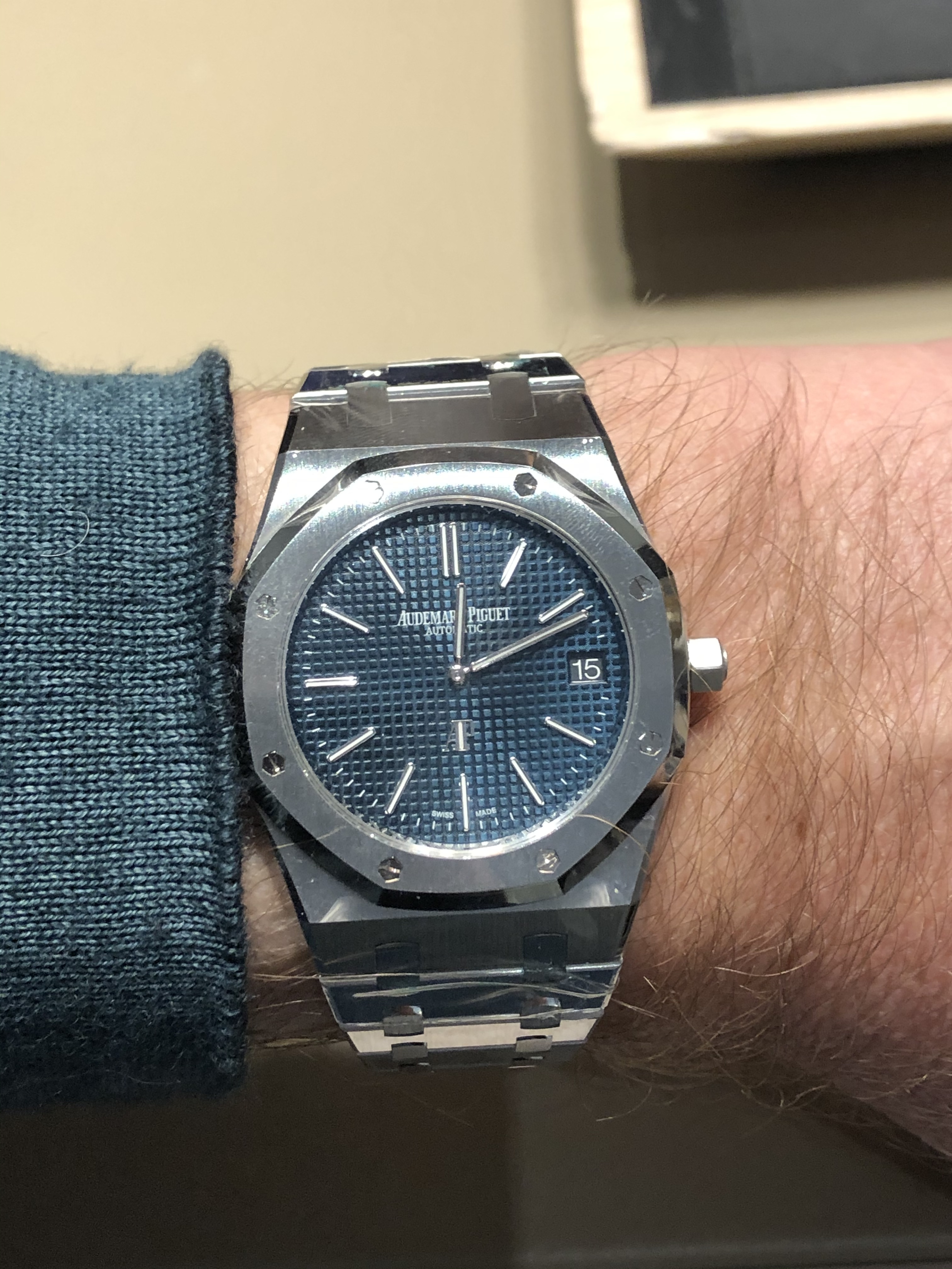 Een heel gaaf horloge. Ik ga ook echt voor AP. Ik doe mijn Sky Dweller er niet voor weg, maar deze lijkt mij perfect om mee af te wisselen. En ondanks dat je het tijdens het dragen niet ziet, vind ik het erg leuk om het uurwerk zelf te kunnen bekijken door de glascaseback. Was vroeger bij auto’s ook mooi onder de motorkap te kijken. Nu zitten daar allemaal grote plastic kappen op bij de meesten.