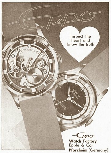 Bij “Otero” liet Mikrolosk me dit zien: “Eppo-Uhrenfabrik, Otto Epple - Königsbach und Pforzheim, Deutschland”.