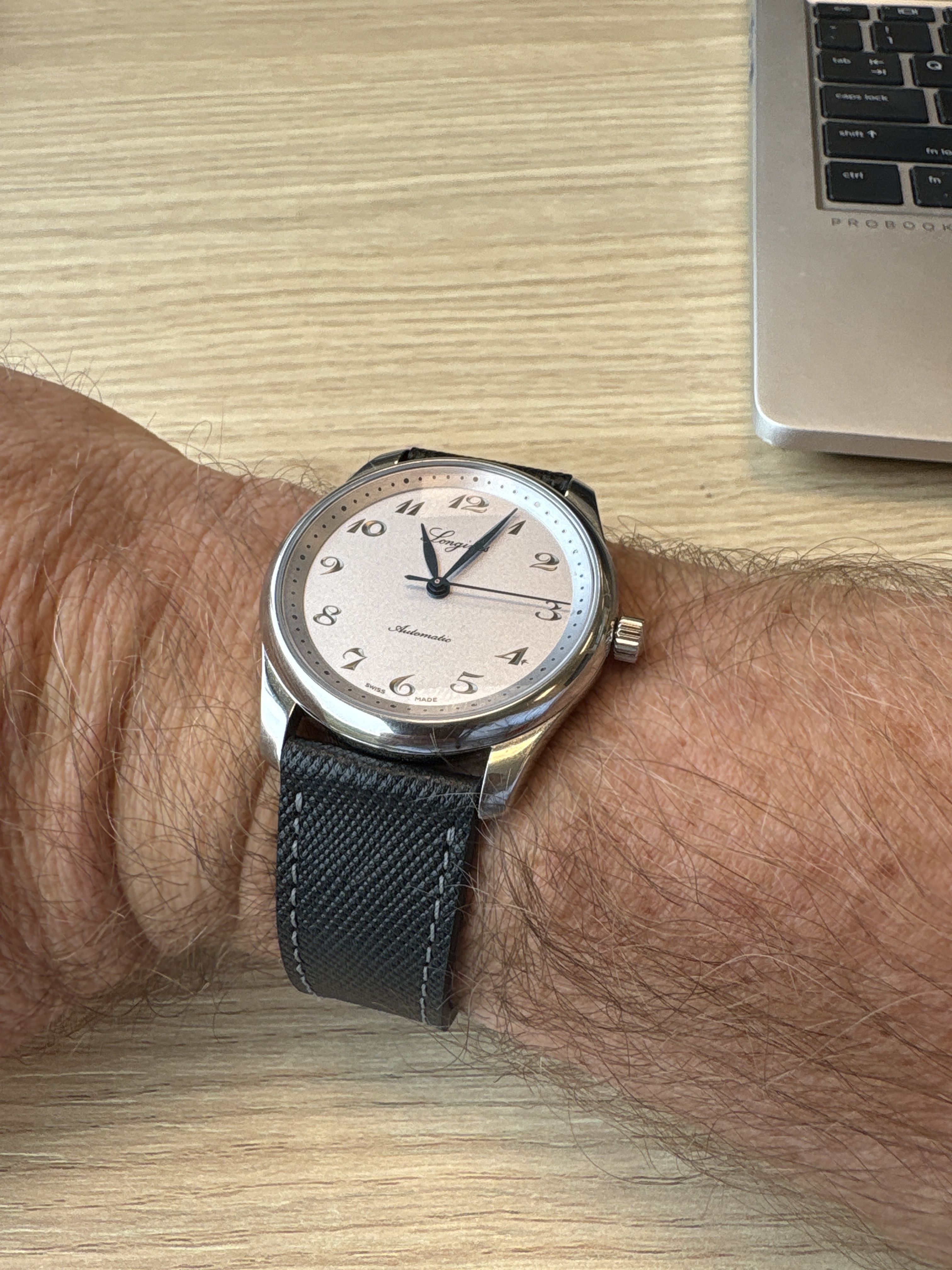 welke band? Zelf neig ik sterk naar een saffiano marineblauwe band maar als iemand wat anders wil voorstellen → graag!
