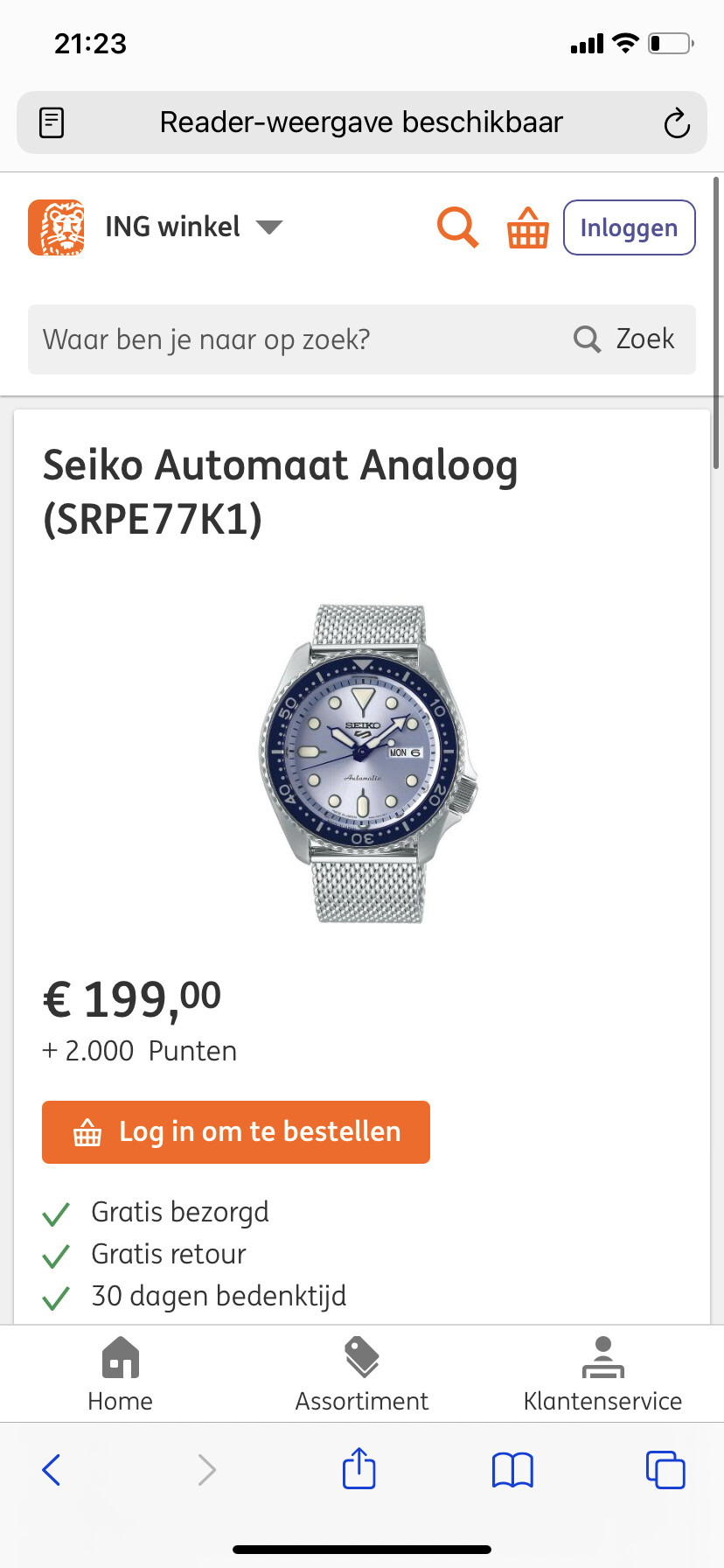 Geen idee of het als aanbieding telt, maar 87 pegels voor een NH35 met saffier en een solide stalen band met solide endlinks vind ik niet gek! Gewoon via amazon nog wel!