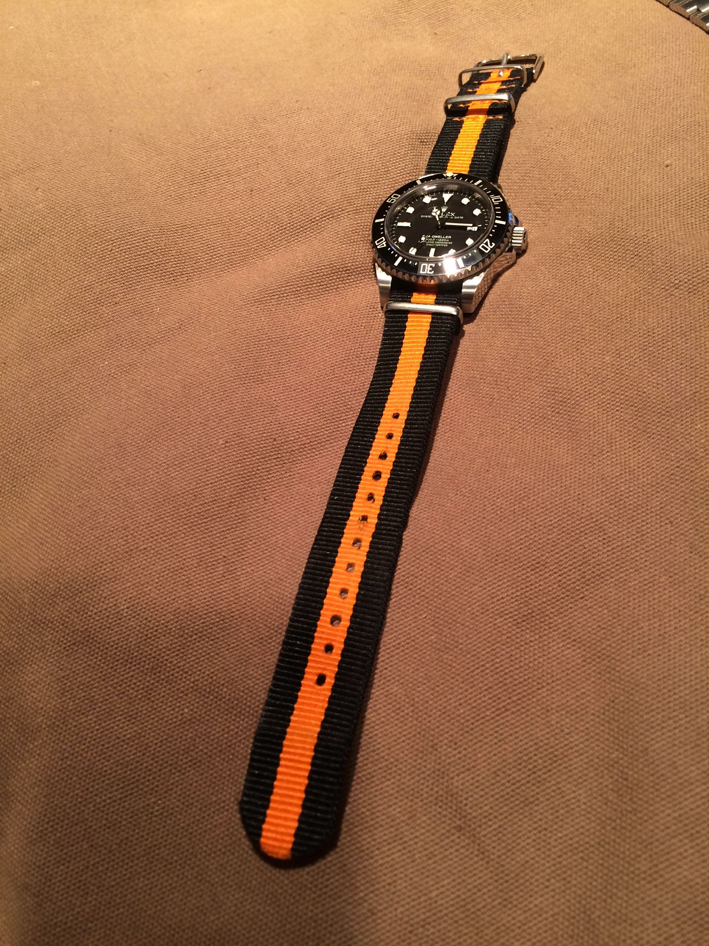 een Rolex Submariner op een NATO?.. Ik vind het persoonlijk een leuke combi… en met diverse kleurtjes kun je de band ook nog bij je kleding matchen…