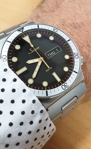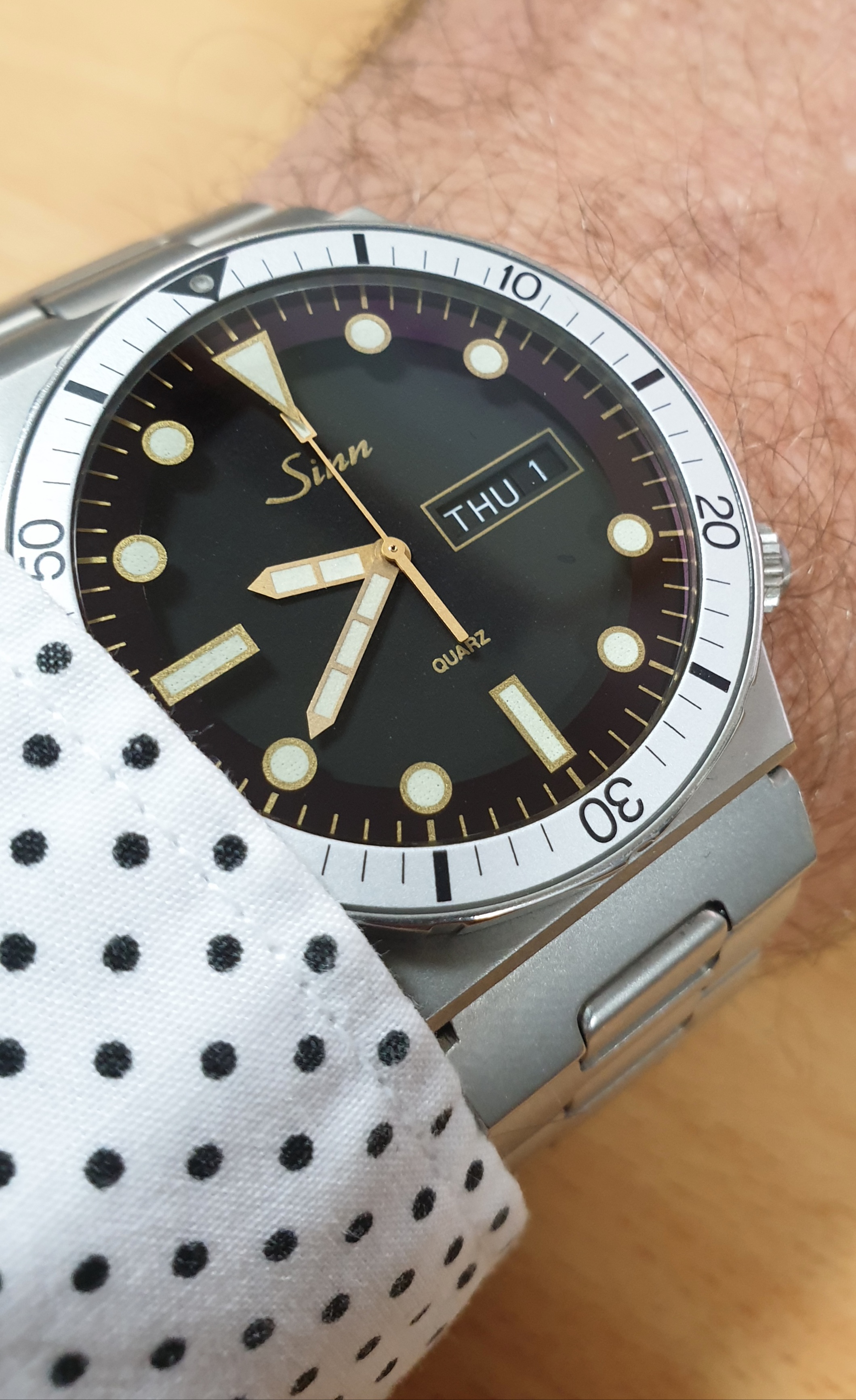 Een vreemde eend in deze bijt is de Sinn 809q waar ik toevallig tussendoor tegenaan liep. Een zeldzame Sinn uit de jaren 80 (full set) waar ik eens misschien een wanhopige Sinn verzamelaar mee zal verblijden maar die ik tot die tijd regelmatig draag. Geen NA van gemaakt (augustus)
