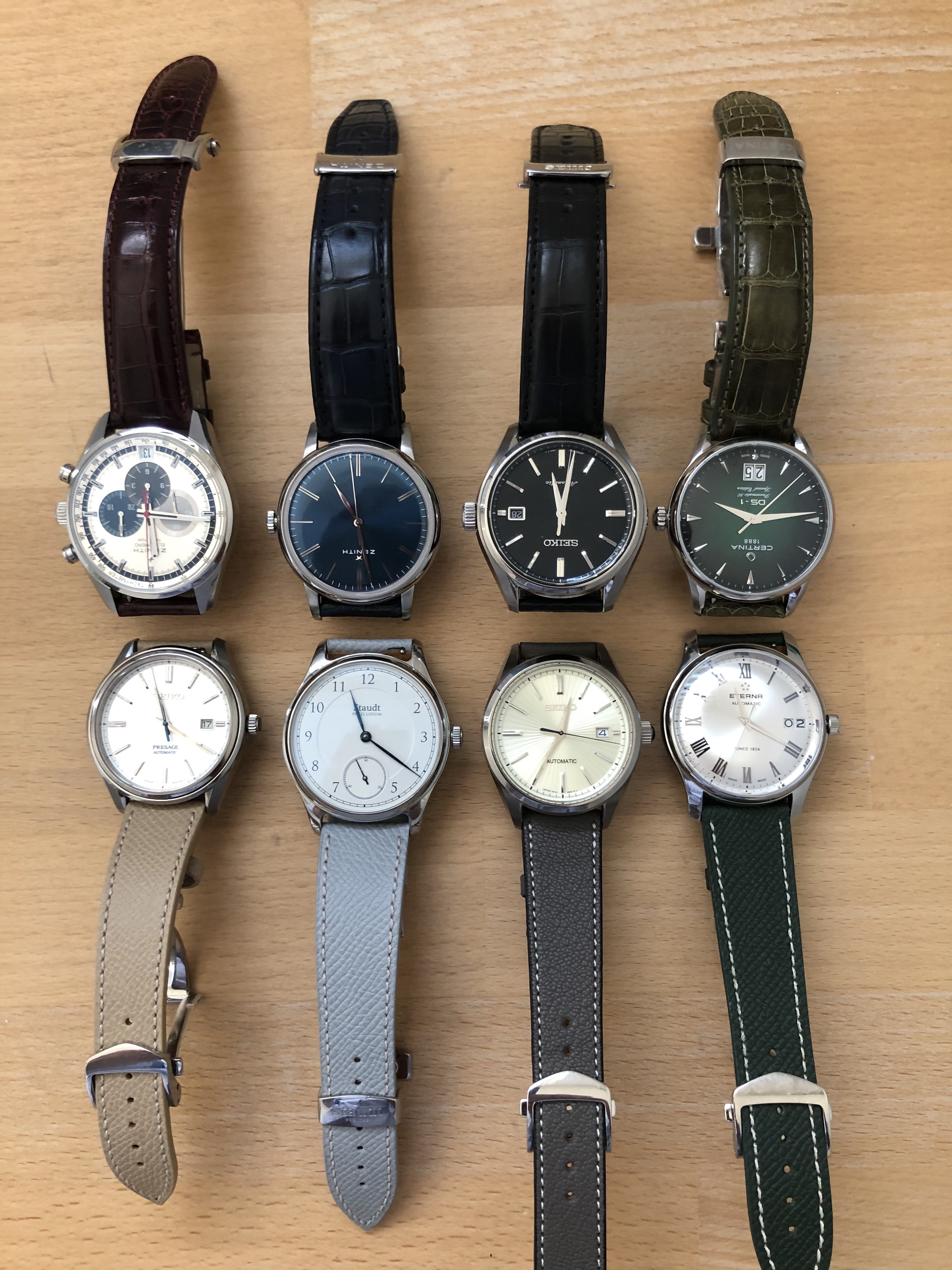 De horloges die het fijnst dragen en waarmee ik een echte “klik” heb zijn de Staudt Praeludium, de Eterna Gragnes Big Date en de Certina Heritage Chrono.