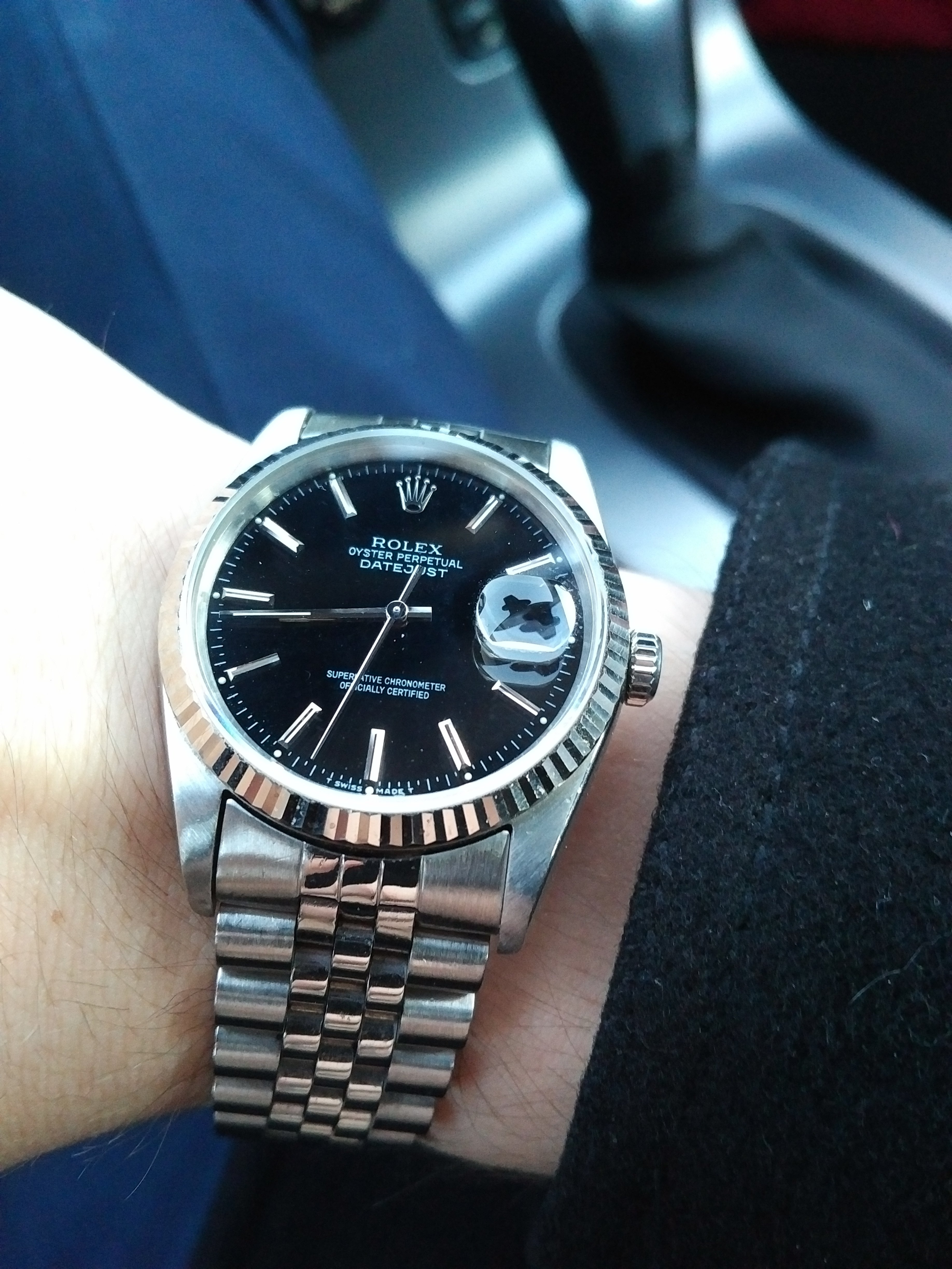 Tsja, ik moest er even aan wennen, maar ook hier geldt: Bijzondere kwaliteit, solid, op een bijzondere manier gebrushed en een prachtige satijnglans (dresser) die heel slecht op de foto te vangen is. Daarnaast, ook klopt het bandje bij de kast en om de pols.