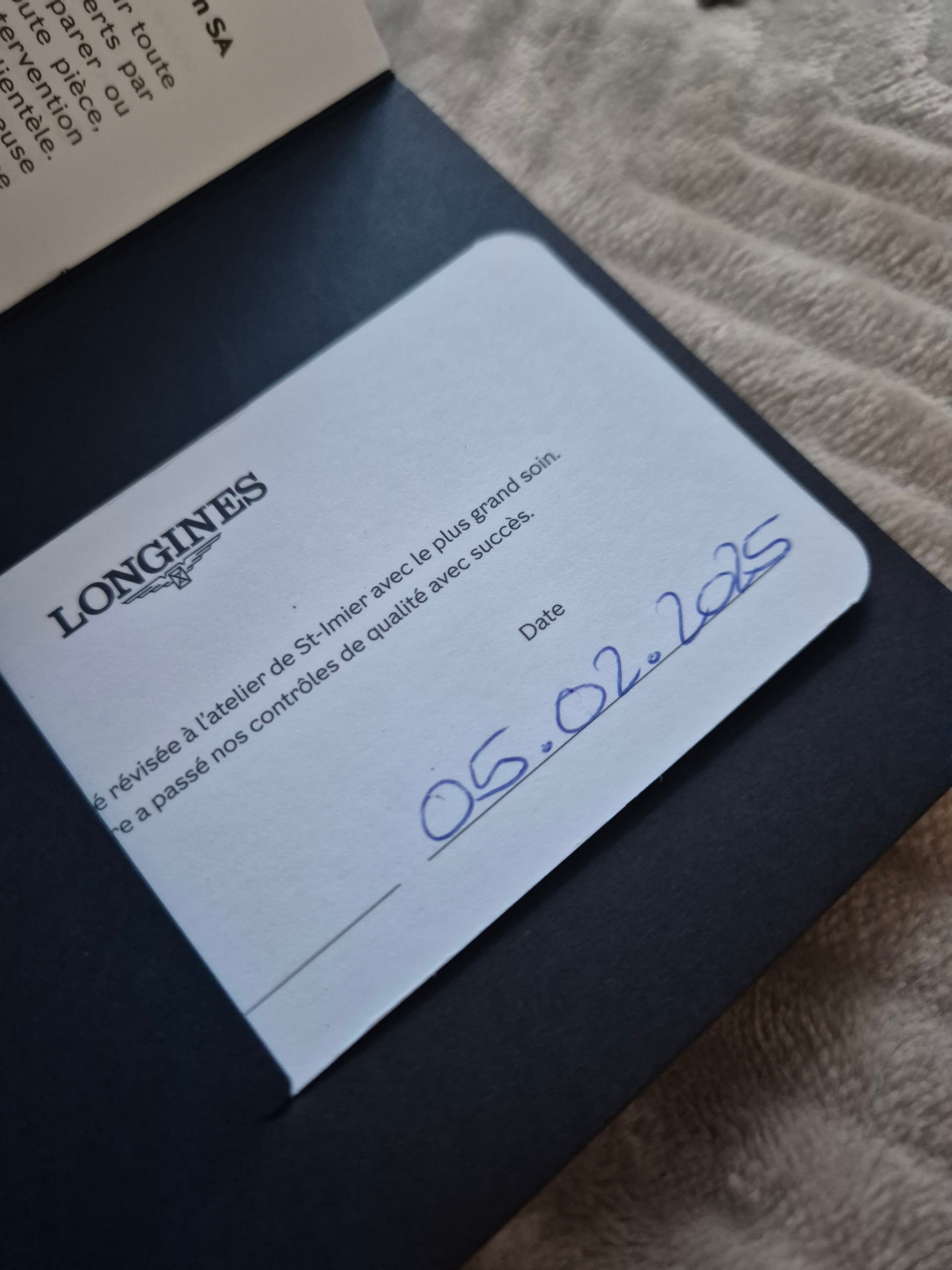 Originele doos en/of eventuele accessoires: alleen service doos en dan de extra lederen band en onderdelen en papieren van service van febr dit jaar.