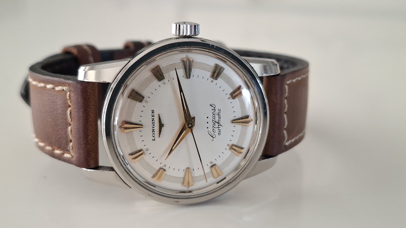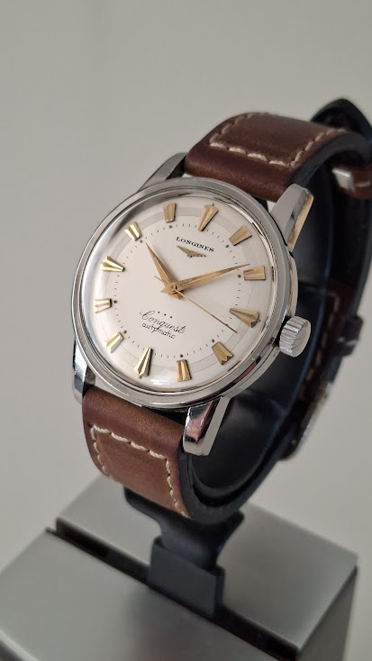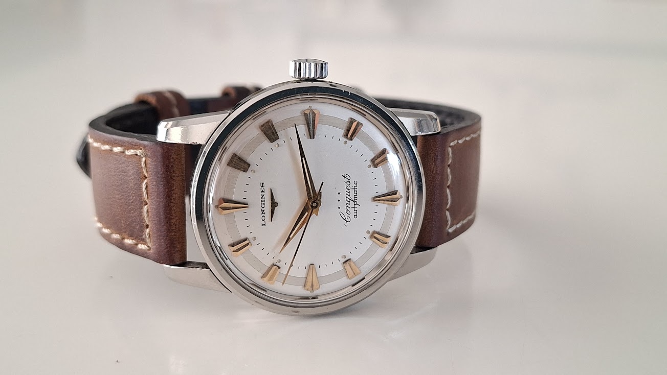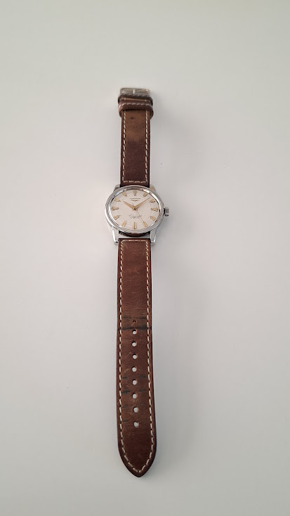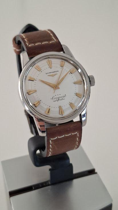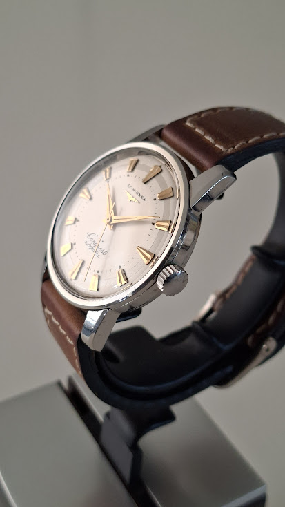 Leeftijd: 1959 → “It was invoiced on 20.11.1959 to the company Bessire, which was at that time our agent for Belgium” aldus Longines