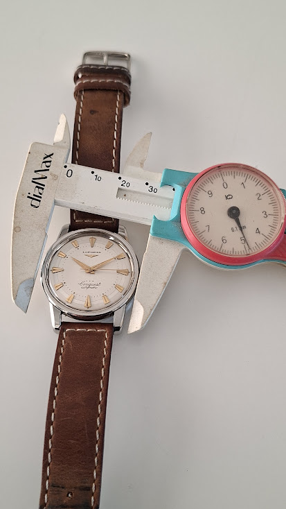 Conditie (krassen, werking etc): in nette vintage staat. Kast is scherp en in nette staat, lichte draagsporen. In goede mechanische conditie. De kroon is in de loop der jaren ooit vervangen geweest. de gesp is origineel Longines maar daterend uit de jaren 60 (heb ik erop gezet)