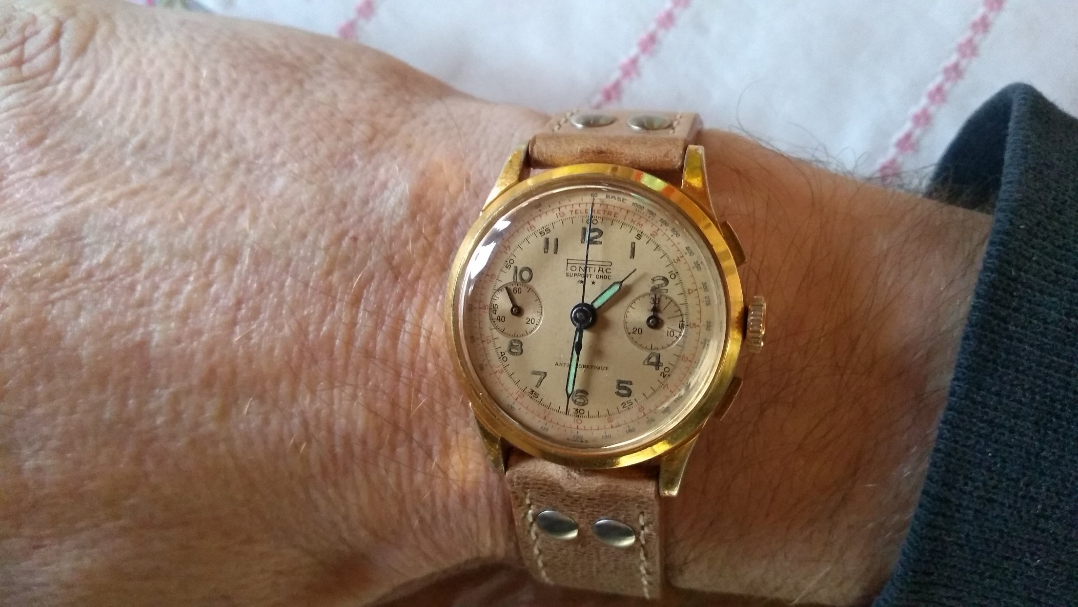 De patina op de gene met de roze verkleurde wijzerplaat is zo zacht en warm, dat maakt me blij. Ik kocht het horloge met het glas eruit een een hele lelijke generieke kroon. Met wat liefde bij wesselink en vreeker was hij klaar om me weer lang te verblijden. Ik heb de generieke kroon vervangen voor een kroon van een moderne heritage conquest met het idee om er nog een originele kroon bij te zoeken. Deze zijn wel te vinden maar eigenlijk vind ik de iets grotere kroon wel stoer. Daarbij geeft het een nog iets modernere look. Wie weet verander ik het nog wel eens in het kader van: meer origineel is meer beter.
