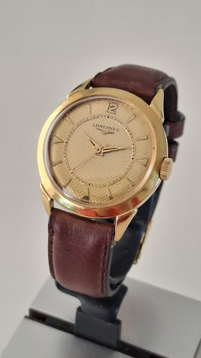 Erg mooie Longines dresser in een net formaat en in nette staat. Hij loopt als een treintje en is een echte parel aan elke pols. nette vergulde kast met de normale ouderdoms- en draagsporen. glas netjes. Pracht van een textured wijzerplaat, kortom een beauty in al zijn facetten.