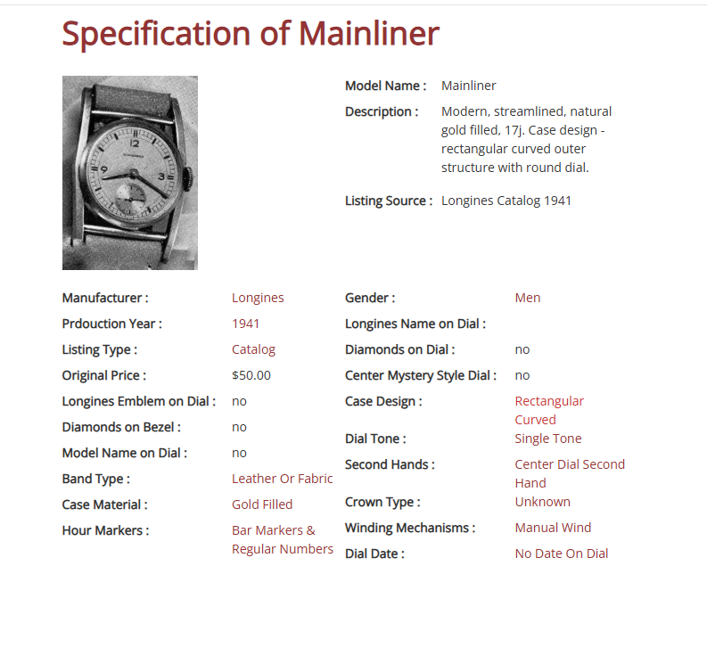 Merk en model: Longines mainliner