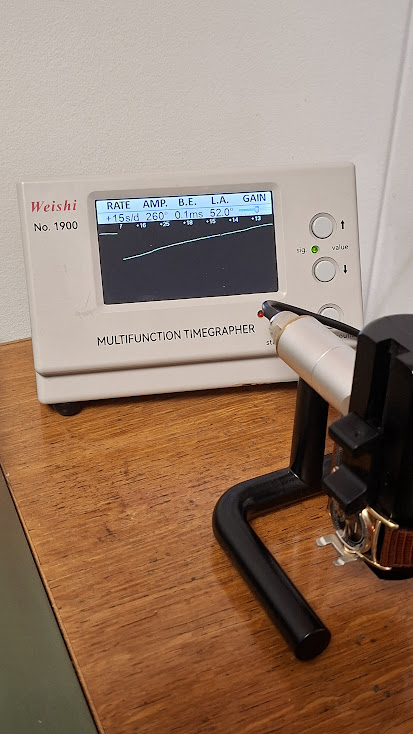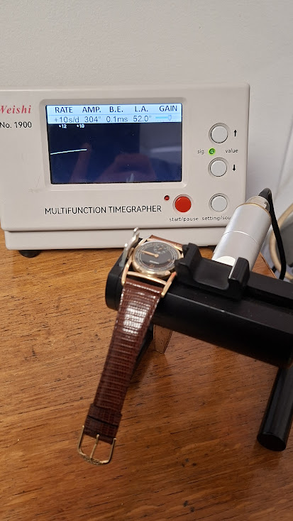 Conditie (krassen, werking etc): In nette vintage staat. Vergulde kast met ouderdomssporen. Glas netjes en mechanisch in topconditie, zopas gereviseerd: