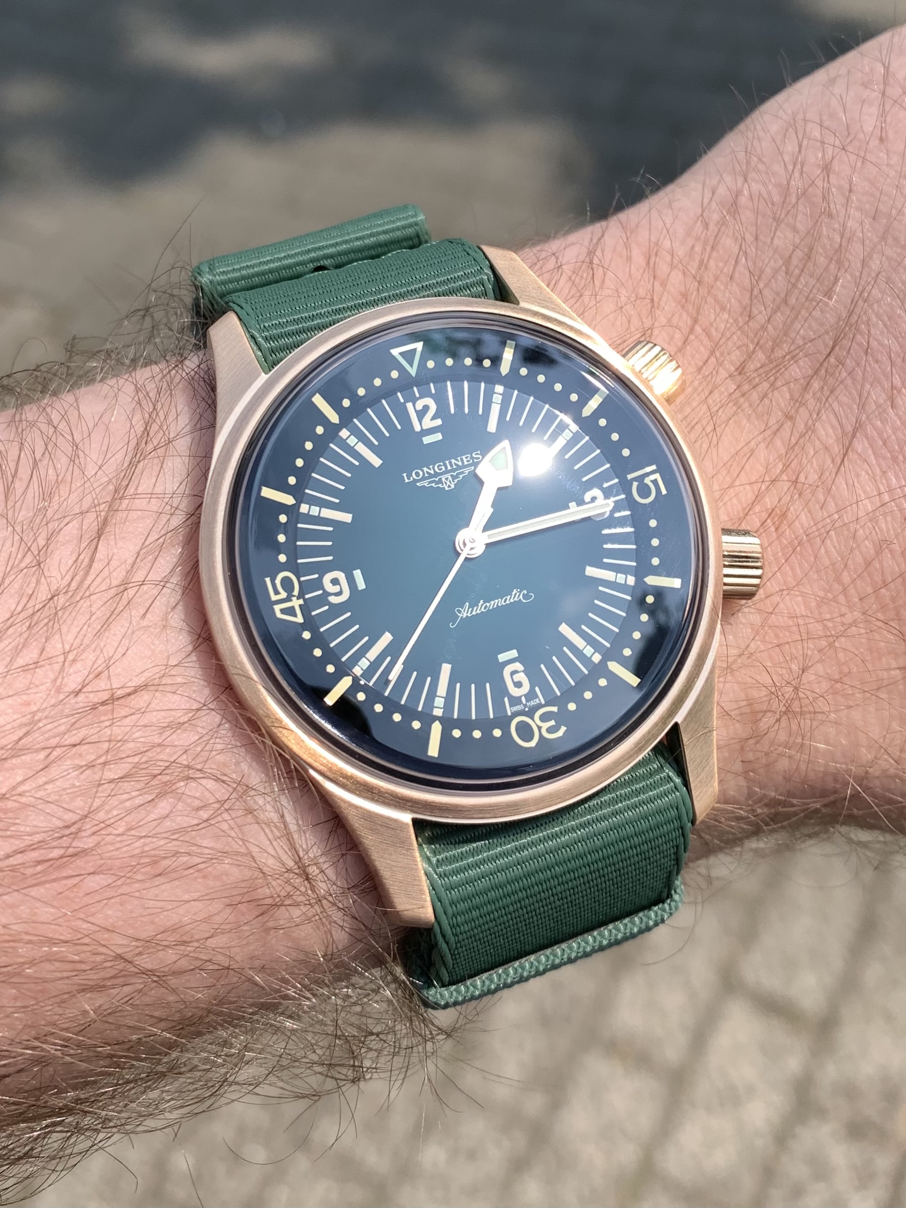 Onlangs zag ik dat Longines nu ook Nato Straps verkoopt. Ik vroeg mij af wie ervaring met de Nato Straps van Longines heeft. Vanwaar de vraag zou je denken? Nou, ik overweeg om mijn L28284532 te voorzien van een groene Nato Strap. De prijs die Longines hiervoor rekent vind ik wel erg aan de hoge kant (185 euro) ten opzichte van de gemiddelde 30 euro die ik op internet vind voor “merkloze” straps. Is er zo veel verschil in kwaliteit tussen de goedkope straps en die van Longines, of betaal je simpelweg voor de naam?