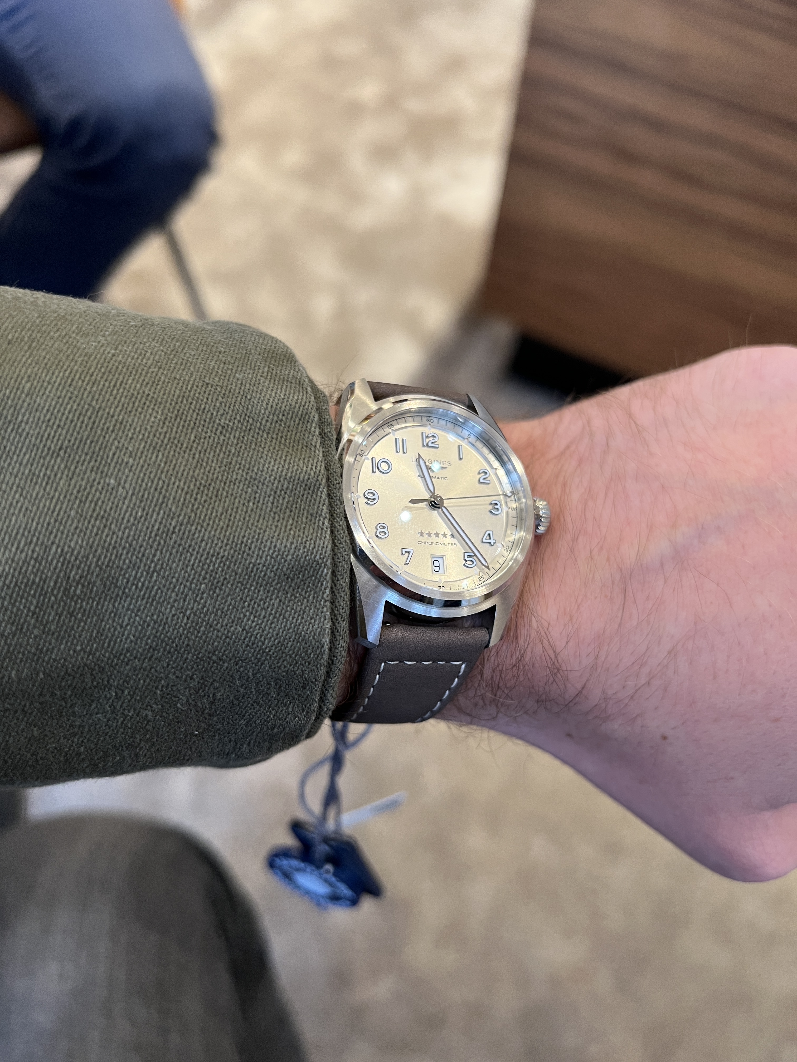 Onlangs gepast en echt een prachtig horloge, staat nog steeds op het lijstje. Wel op staal maar die was er niet.