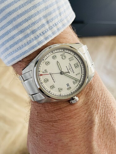 Sinds twee weken m’n eerste Longines in bezit. Na een lange tijd de IWC pilot 36 overwogen te hebben ben toch op deze klok gestuit.