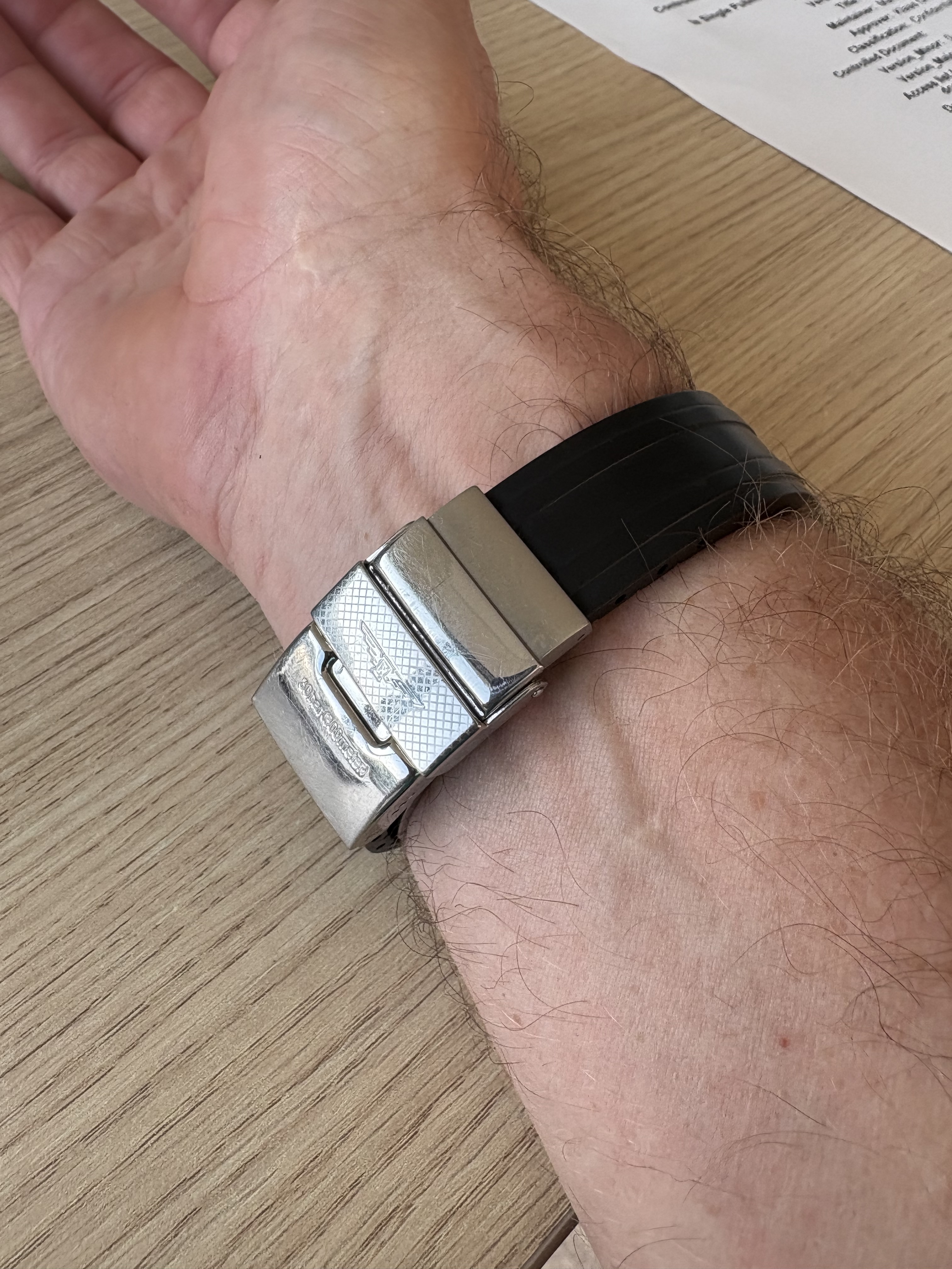 En met dit weer met de fijne rubberen band met ongelooflijk overdreven sluiting