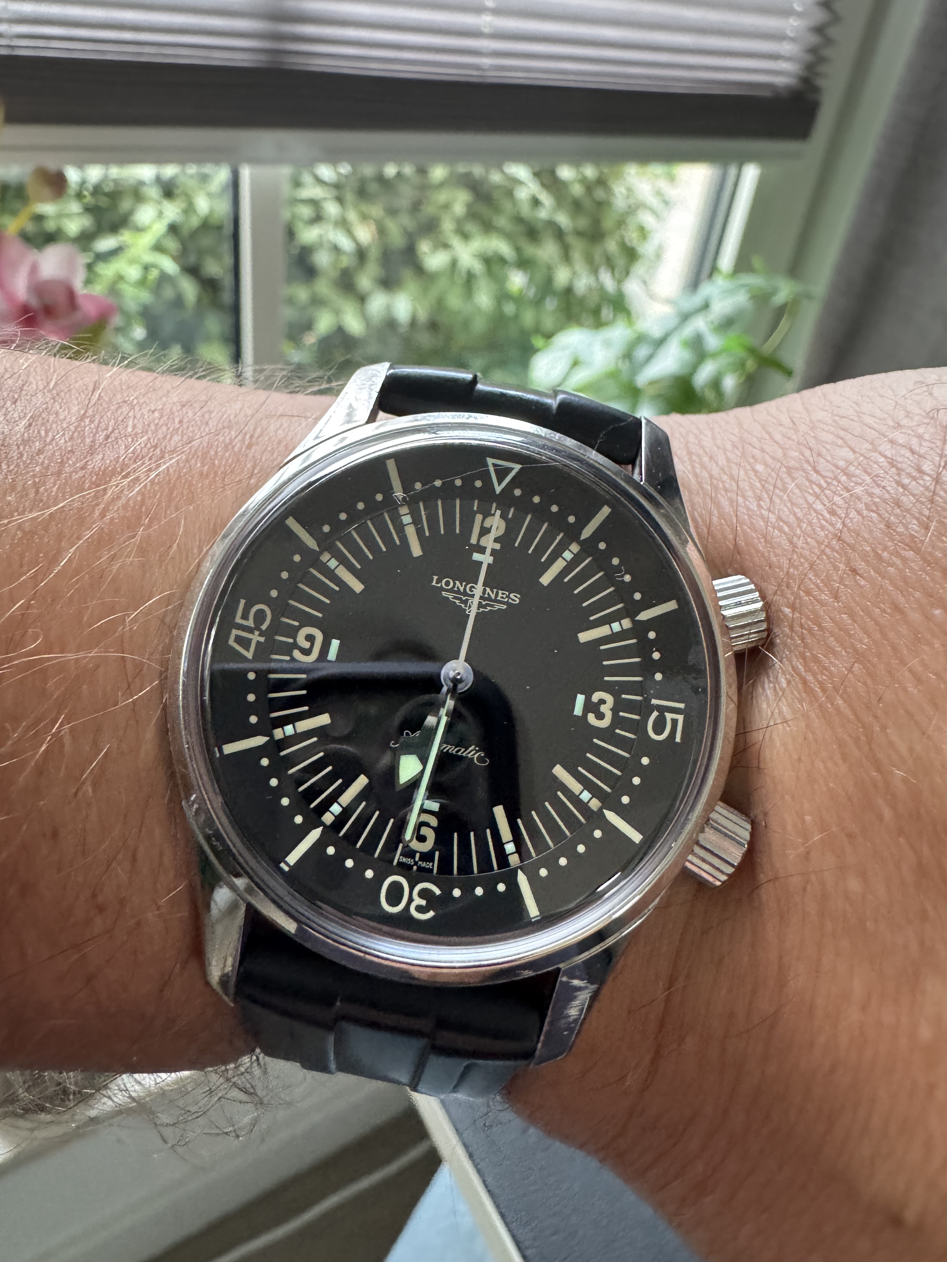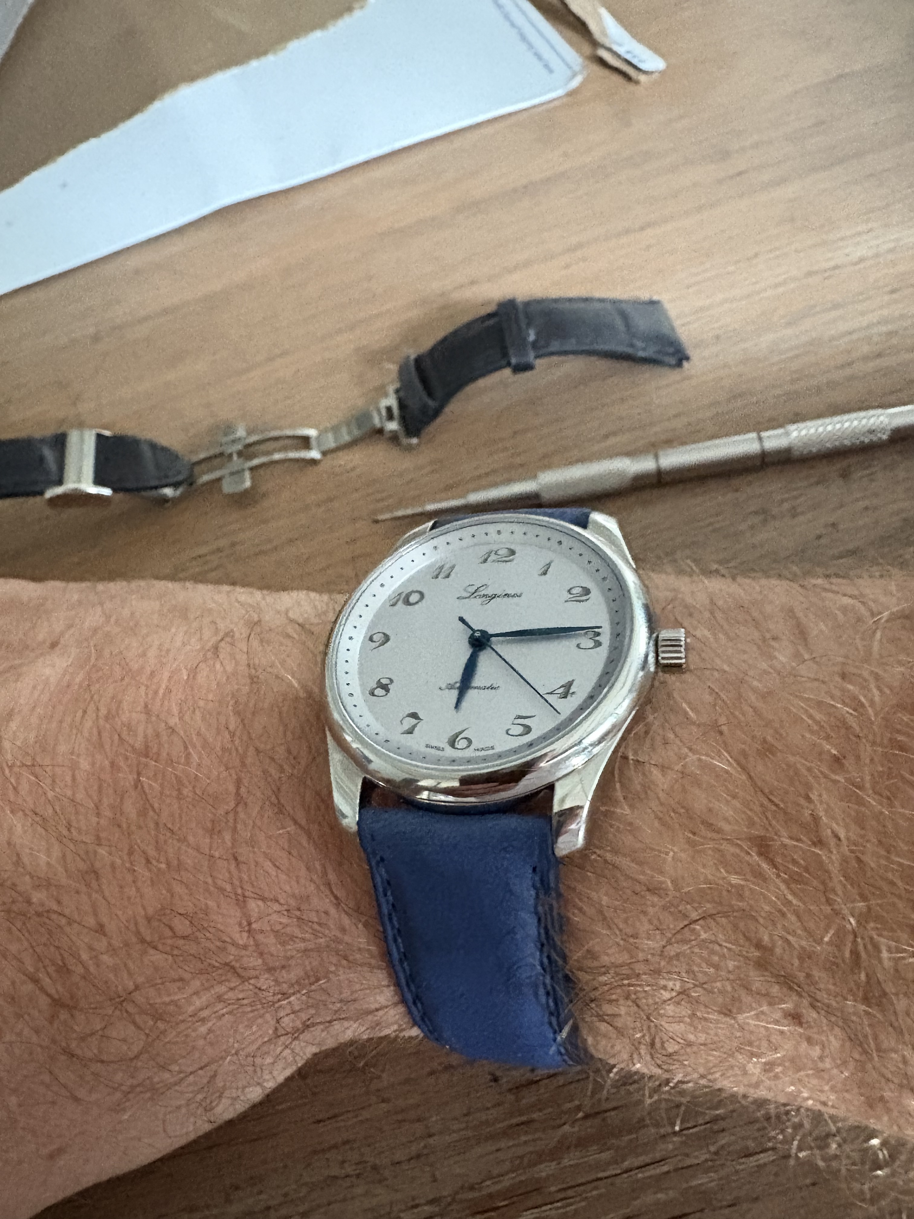 Dat is een haartje op de foto. Ik heb de rubberen band van Longines er op zitten. Maar ik wil eens wat anders.