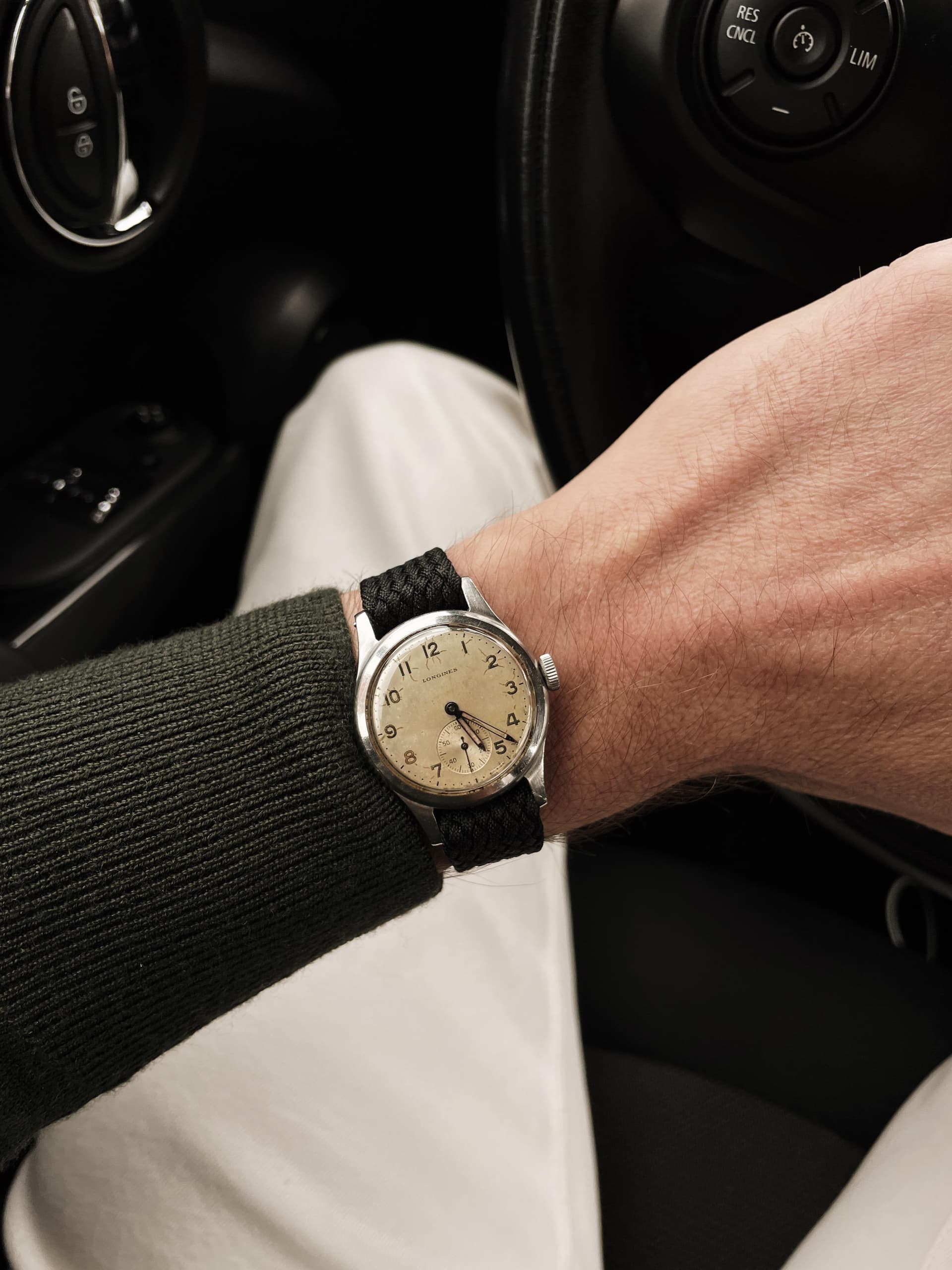 Nooit veel aandacht besteed aan Longines, tot er een op mijn pad kwam! Veel modern hier, erg mooi. Hier een stapje ouder met een Sei Tacche uit 1947:) Op de perlon strap draagt 'ie zalig.