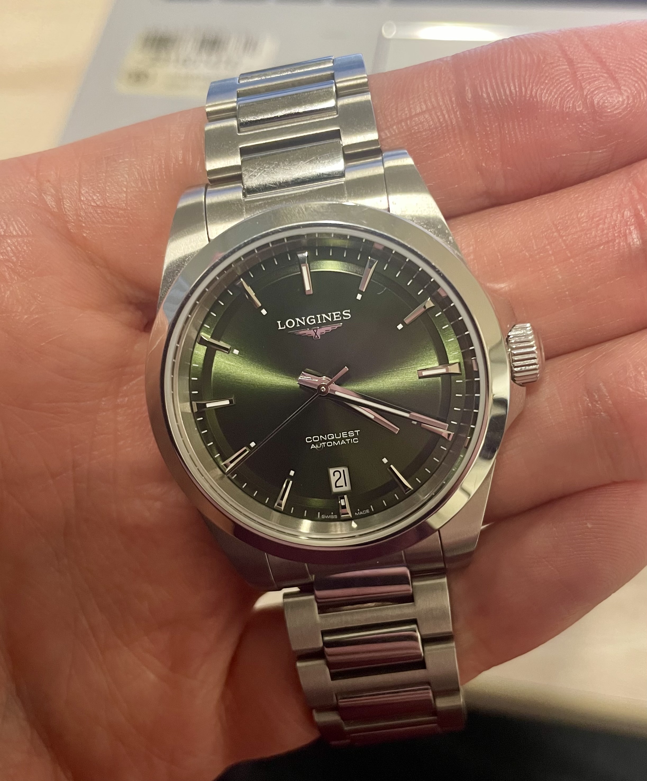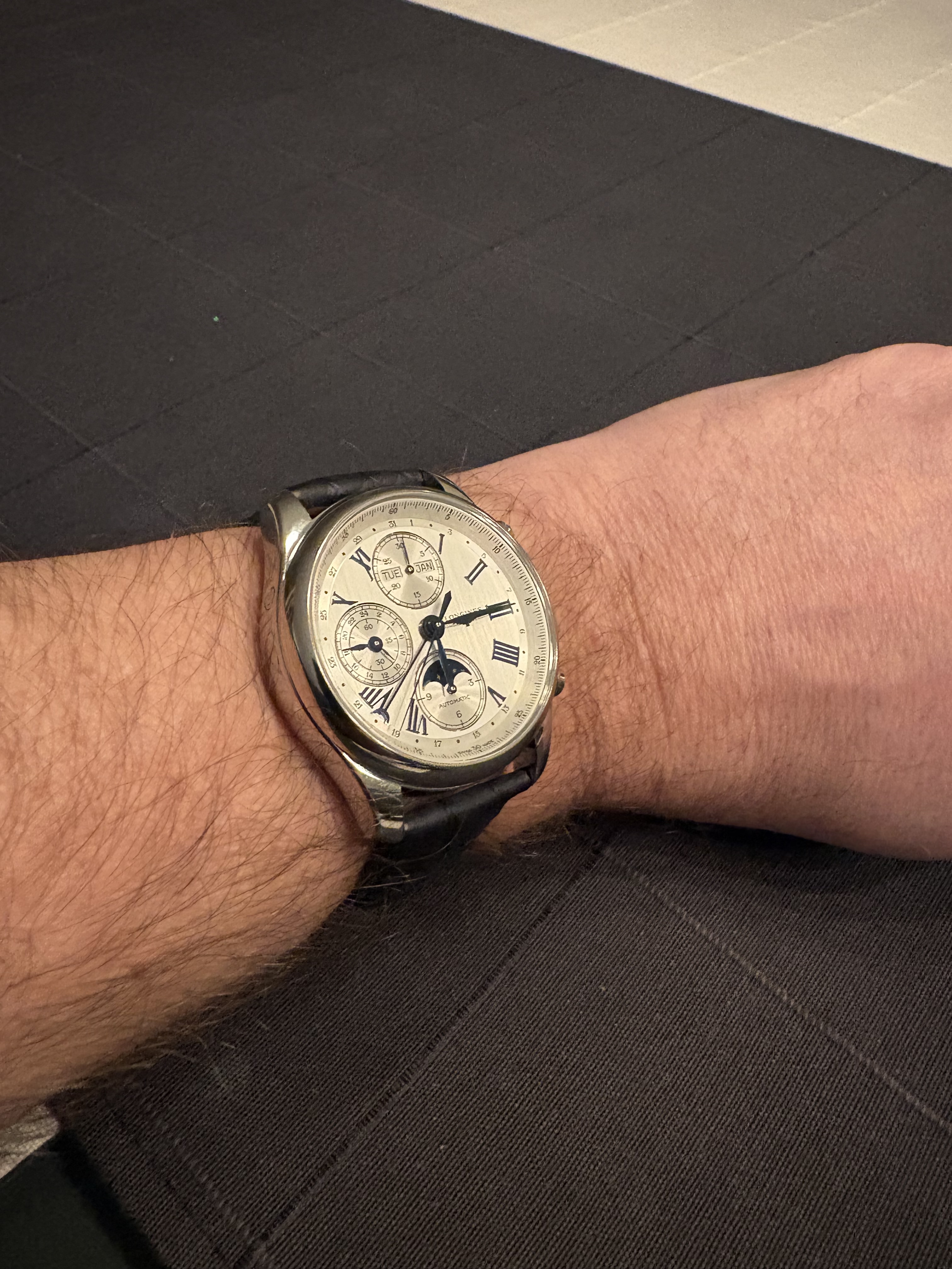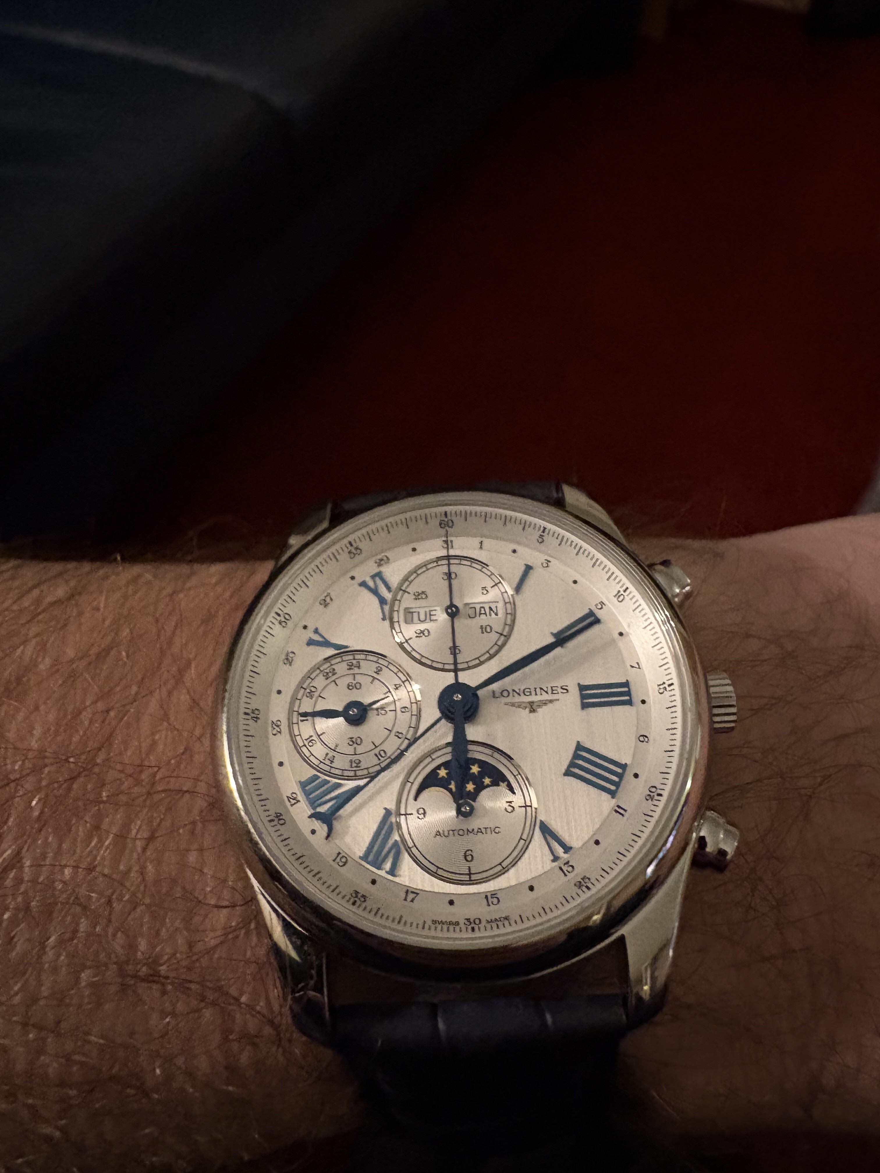 Na de Spirit Zulu Time vandaag mijn tweede Longines in ontvangst mogen nemen. De Master Collection Chronograph Moonphase. Is lastig te fotograferen, maar dit is hem dus… ben er blij mee!