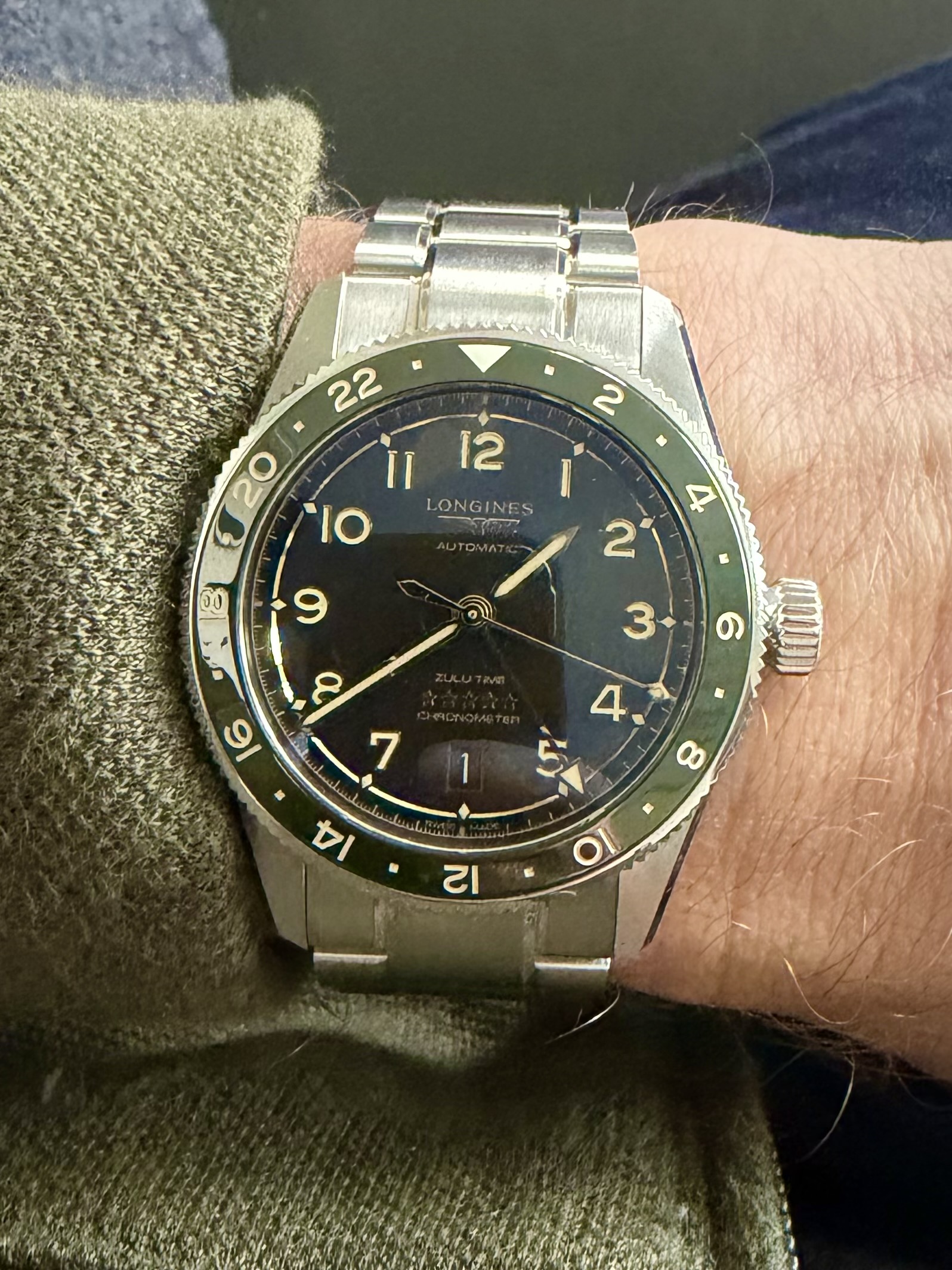 Deze stond op mijn radar en vandaag gepast. Wat een mooi horloge😍. Helaas kon ik de groene er niet naast leggen. Staat nu stipt om 1 voor een volgende aankoop.