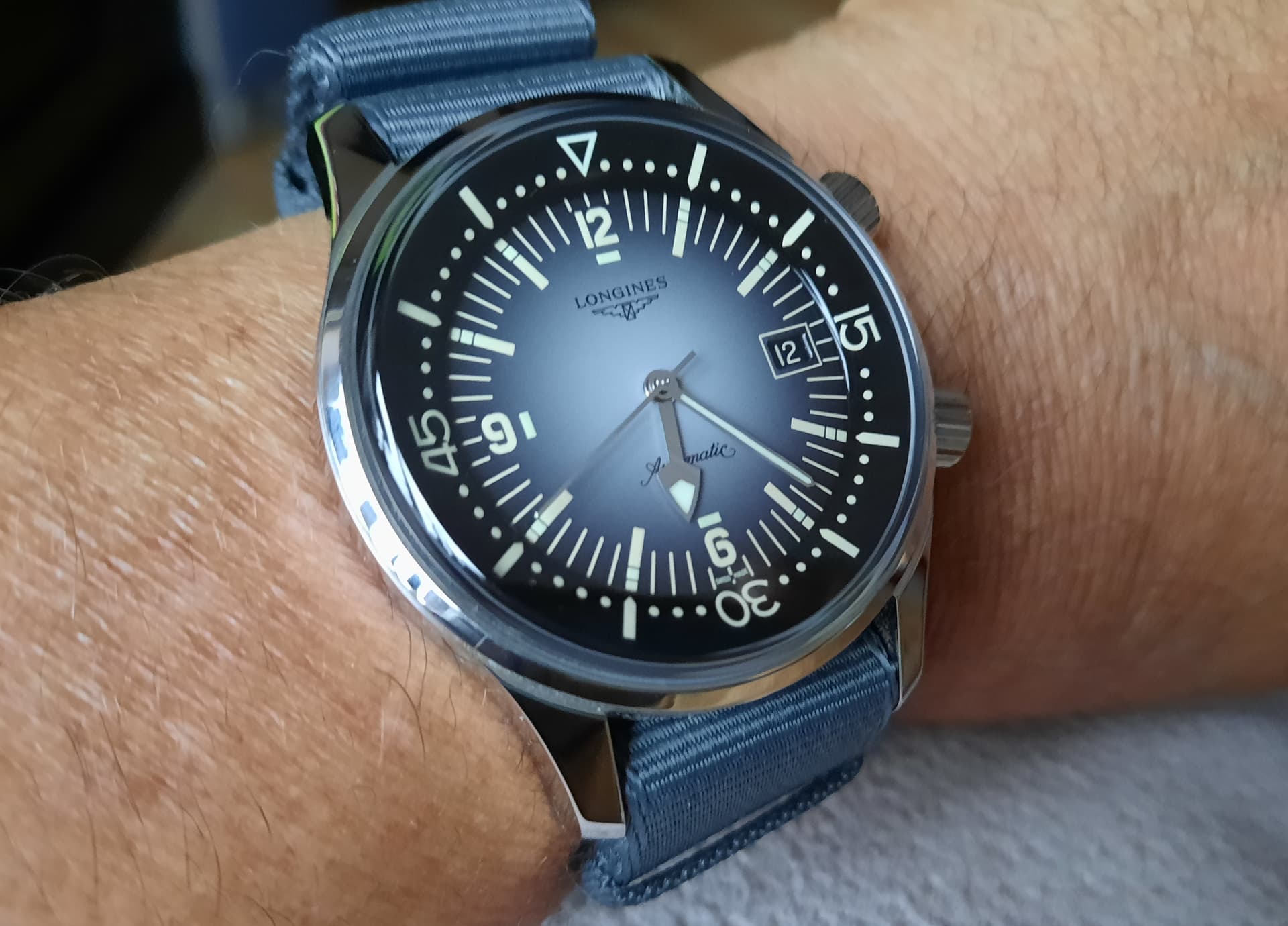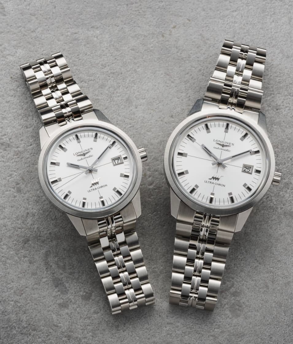 Nieuwe Classic UltraChron is best aardig maar net als bij de Ultrachron diver die ik heb is er te veel tekst op de wijzerplaat. Als ik de ontwerper was zou ik alleen het woord Longines laten staan en het logo en de tekst “automatic” verwijderen.