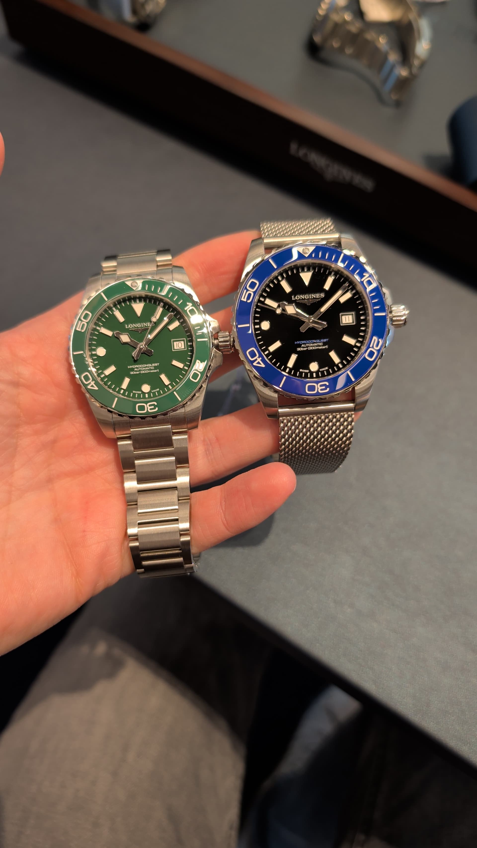 Vanmiddag de groene 39mm gepast bij House of Pertijs, mooie maat. Op de pols valt de relatief grote lug-to-lug niet op in combinatie met de stalen band. De zwart-blauwe variant is ook erg gaaf maar die was er alleen in 42mm om te passen. Geen foto’s helaas.