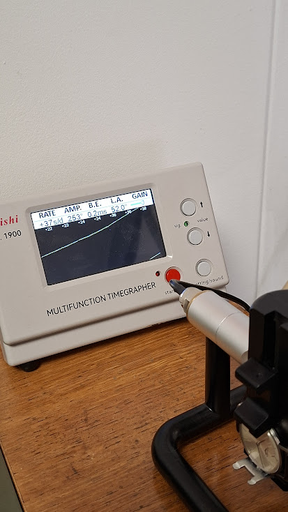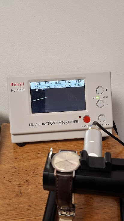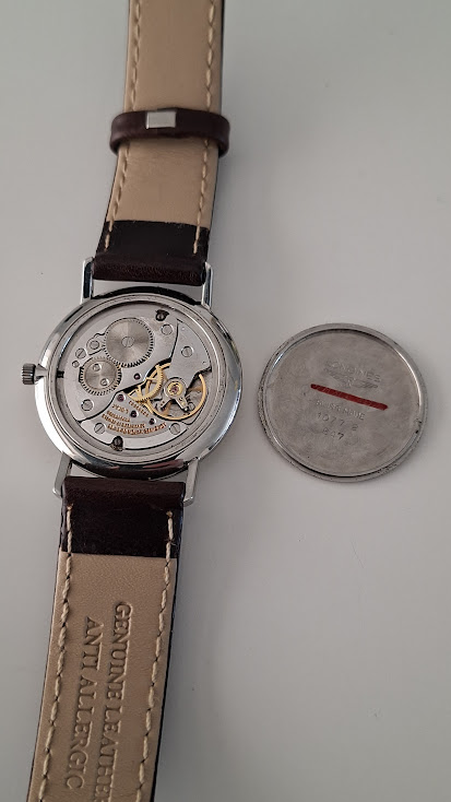 Soort uurwerk en kaliber: cal 847, handopgewonden, serial = 53599883. laatste onderhoud dateert uit 08/2023
