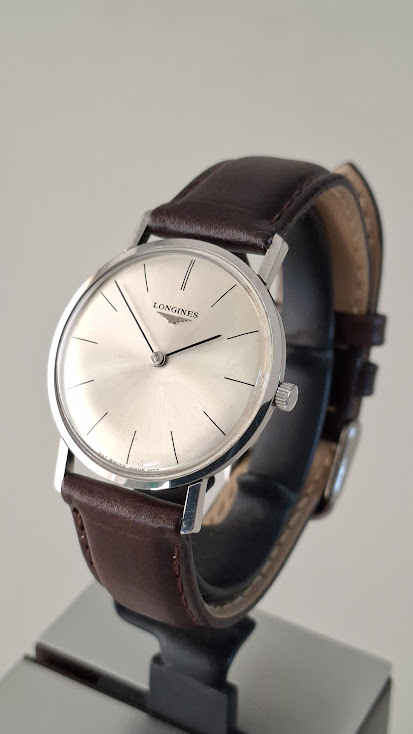 Super coole platte Longines in nette staat. Een elegant pareltje om de pols. Met zijn minimalistische verfijnde afwerking een tijdloos horloge geschikt voor dagelijks gebruik maar net zo goed als dresser op de wat meer formele aangelegenheden. Door zijn platheid biedt het horloge een enorm draagcomfort. Kortom een stijlvolle vintage dresser met focus op eenvoud, draagcomfort en vakmanschap.