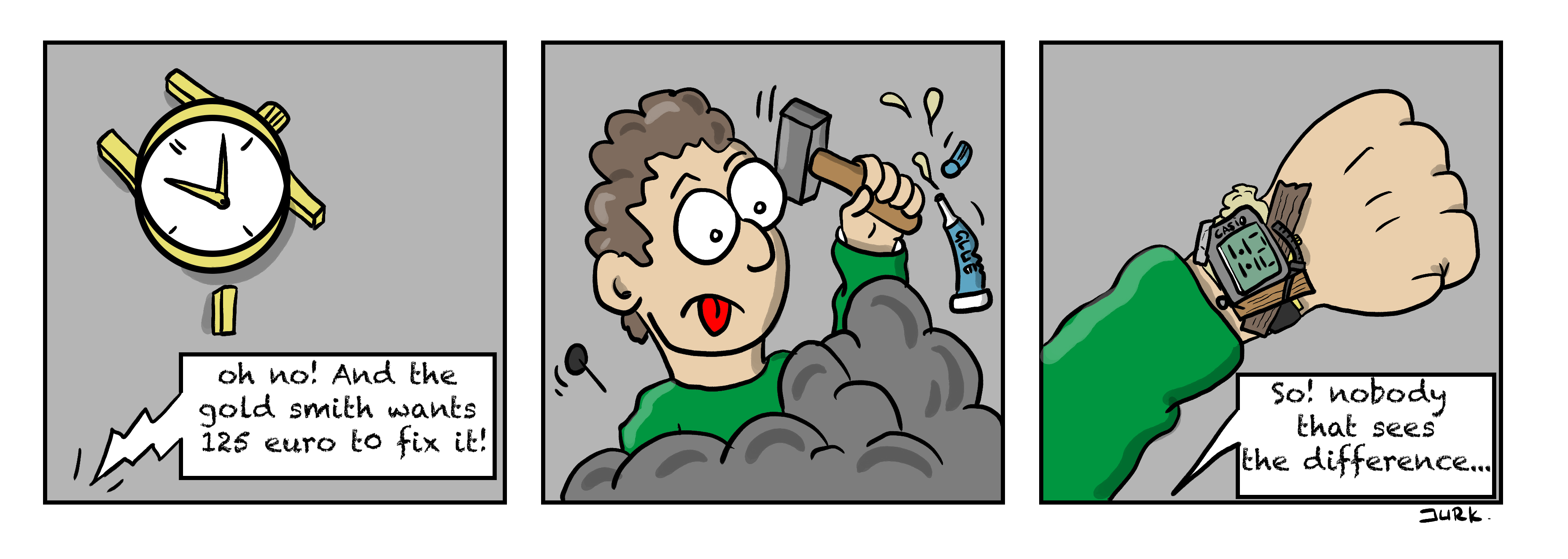 Hij doet ook horloges, heeft er een van mij gerepareerd. Was een pinnetje van de lug afgebroken, vergelijkbaar iets dus