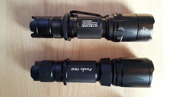 De Fenix TK10 heeft een felle 220 lume en de P20UV heeft eemln max van 800(!!) Lume. Kleine straatlantaarn dus