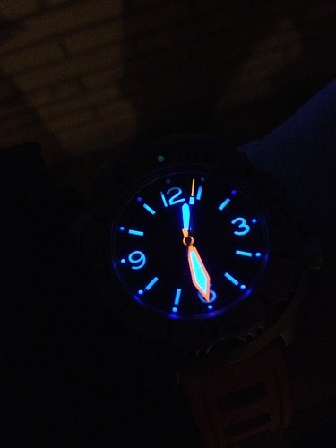 Off-topic: Mijn neefje is altijd geinteresseerd in mijn horloges en mag er aan zitten. Hij wilde de lume zien maar hield het horloge te lang bij een heet lampje in de keuken waarbij de wijzerplaat is gesmolten…