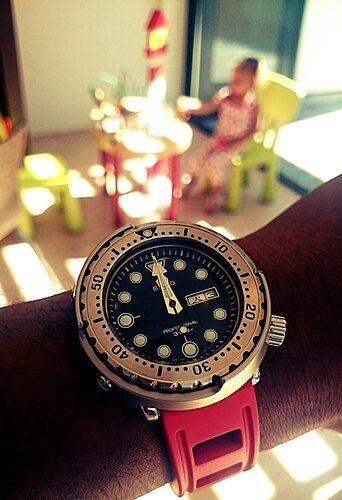 haha, vorige week binnen, toen gelijk foto’s gemaakt, maar nu al weer een paar dagen om de pols.