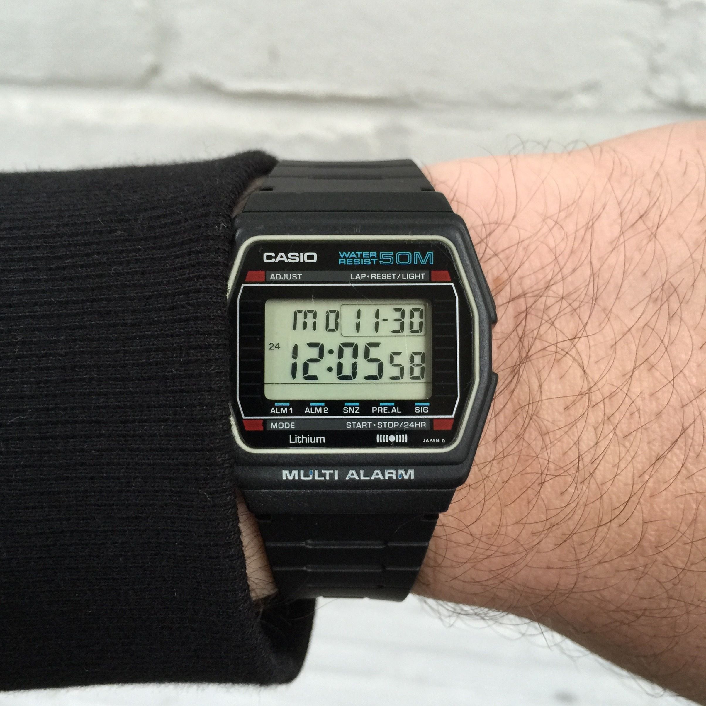 Toen ik nog erg jong was, kreeg mijn vader de diagnose diabetes en had een horloge nodig dat hem er meerdere malen per dag aan herinnerde om zijn insulineinjectie te zetten. Dat werd deze Casio, omdat 'ie vier instelbare alarmen heeft. Ik kan die weliswaar niet meer gebruiken omdat de pushers niet meer terugspringen na indrukken (en moet in feite dus het uurwerk euro halen om de tijd te verzetten