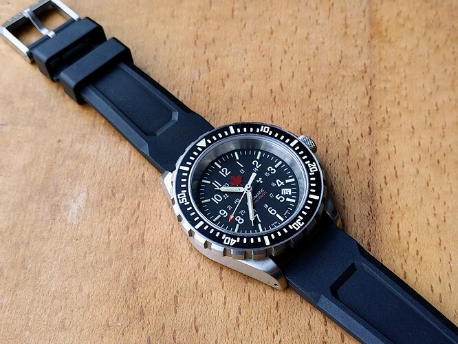 Maar voor de rest? De seiko rubbers verdwijnen meestal ongedragen in de la. En ook het rubber van the orginal MSAR (Maple Leaf SAR) legde het uiteindelijk af tegen een MN strap. De vraag is dus of deze nieuwe strap mij gaat verleiden tot een lang leven om de pols.
