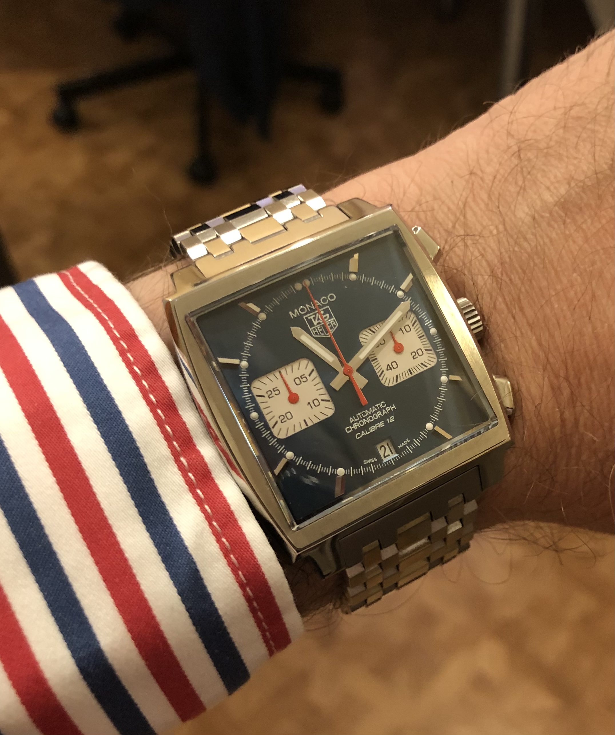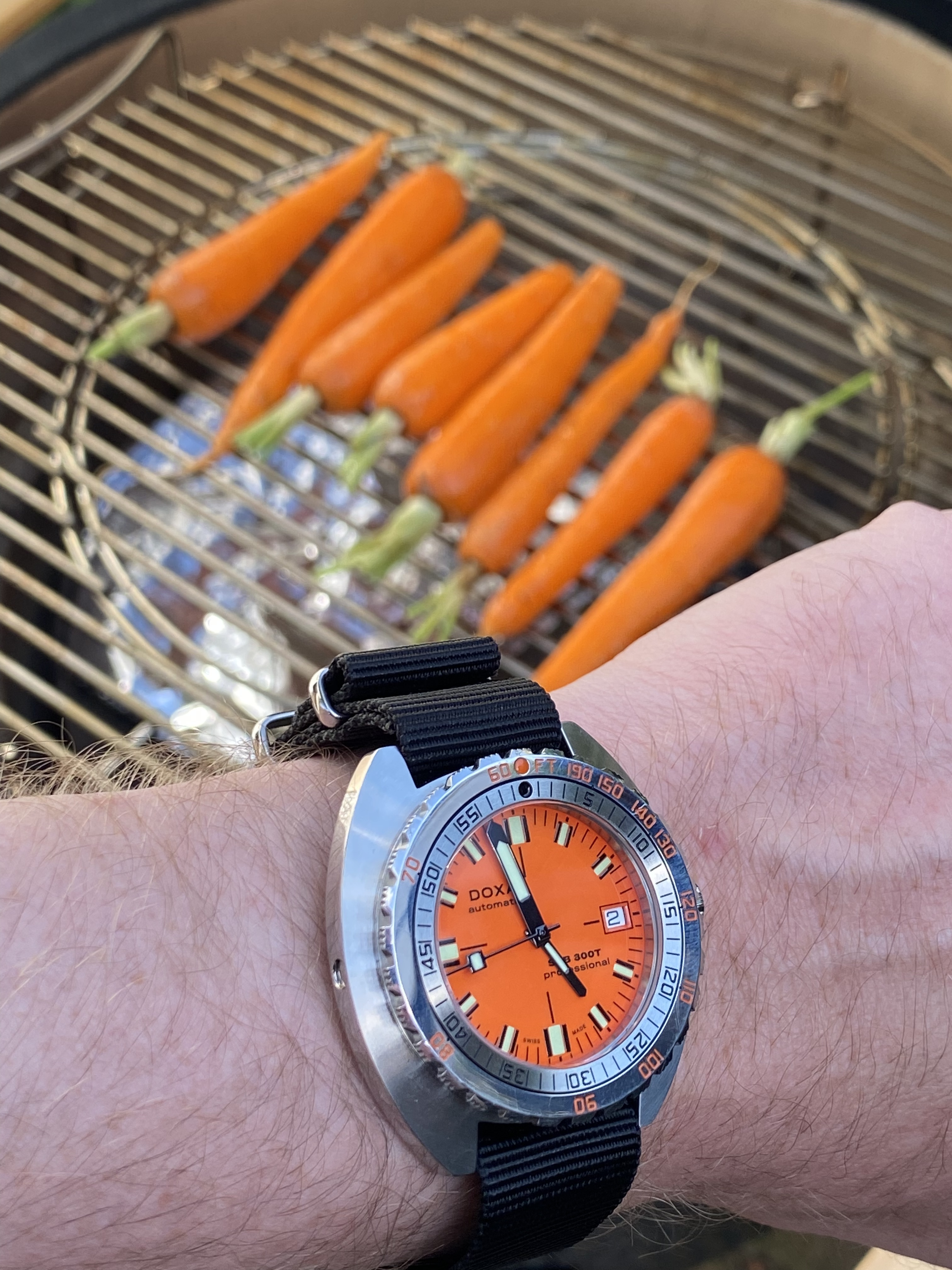 Up, want ik zie vaak genoeg een afgestemde kledingkeuze op de wijzerplaat- of kastkleur van de getoonde horloges hier.