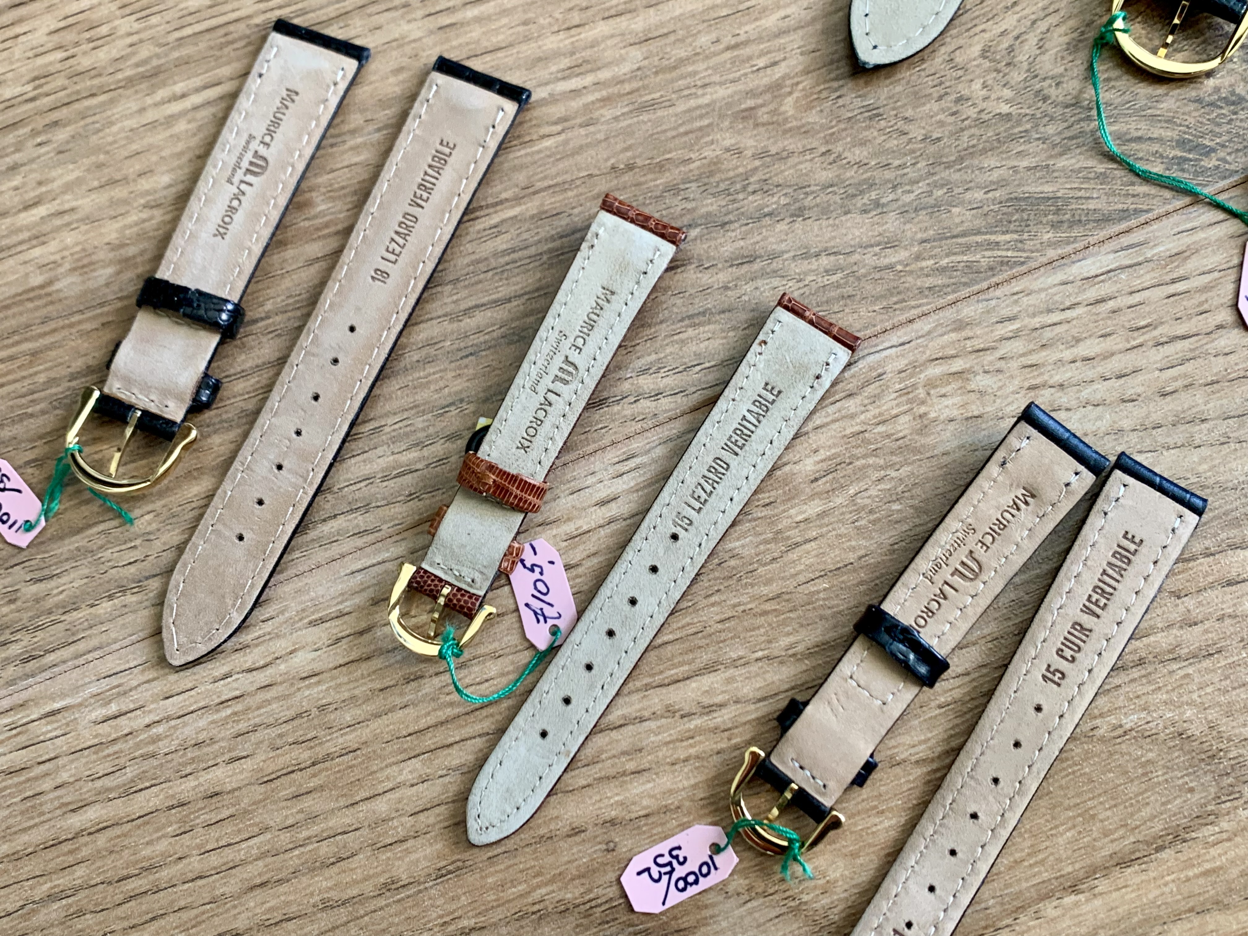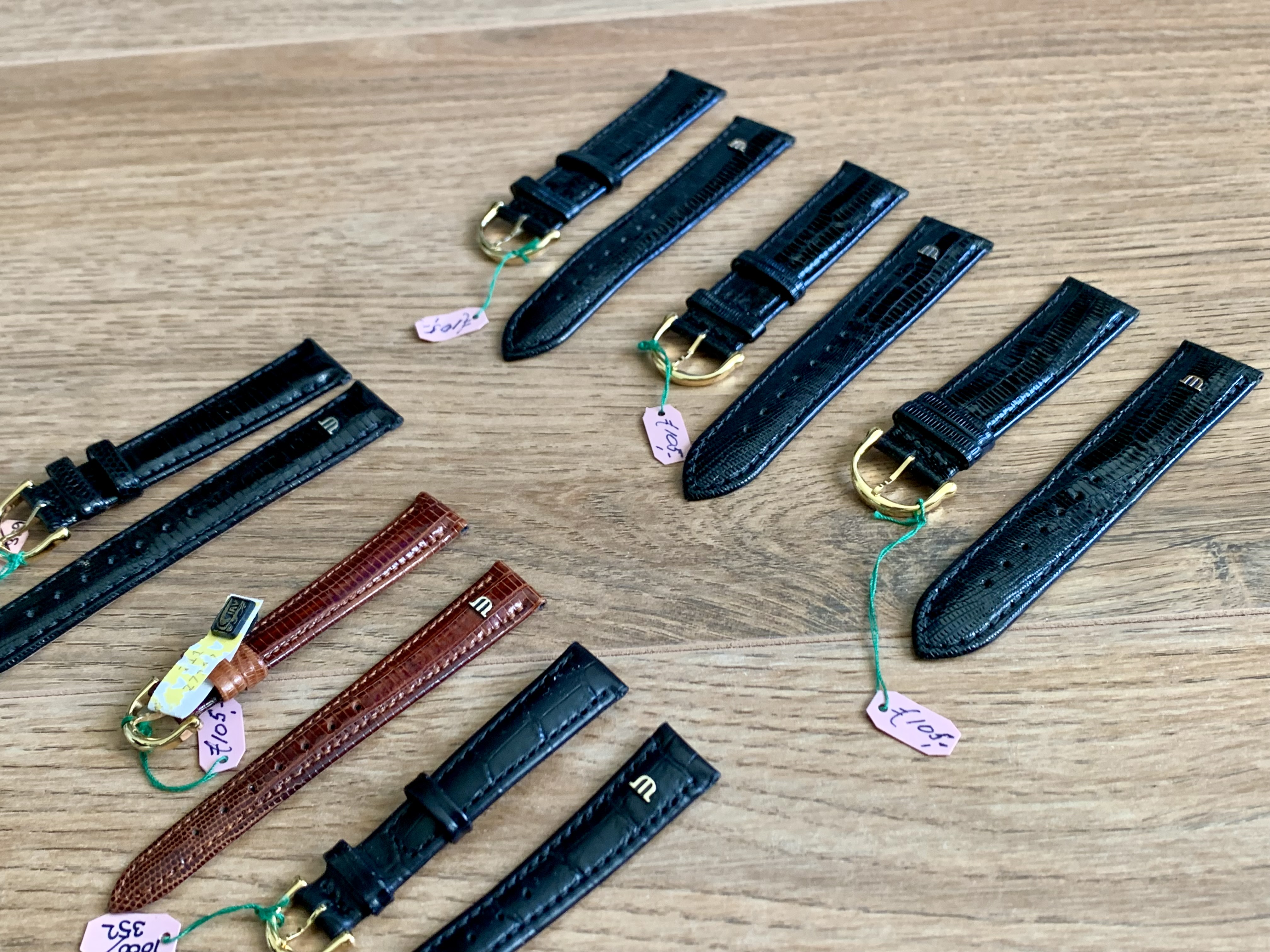 Originele Maurice Lacroix lederen horloges bandjes. 3X 20mm 1x 18mm 2X 15mm €100 voor alle bandjes. Bandjes liggen lang in de kast dus mogen ze weg.
