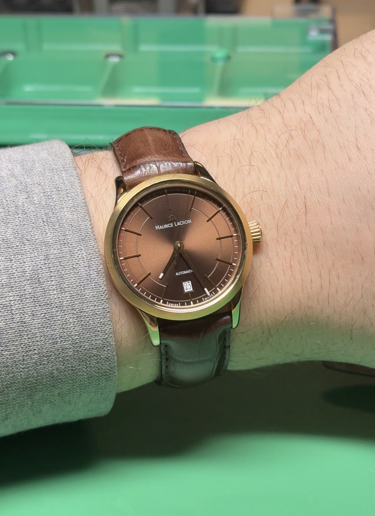 Vandaag mijn Maurice Lacroix weer eens aangedaan. Dit horloge is van mijn opa geweest, daarna heeft mijn vader hem gedragen en nu van mij.