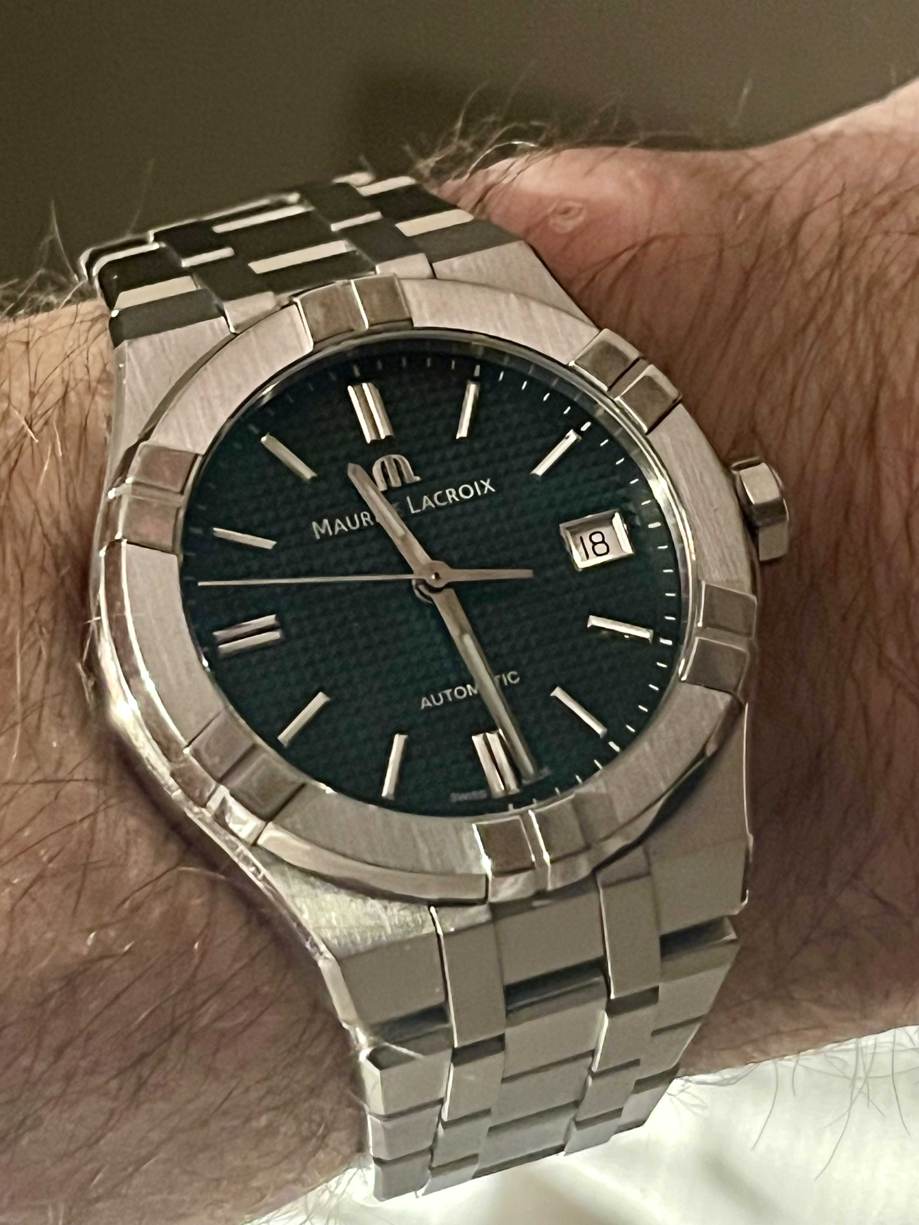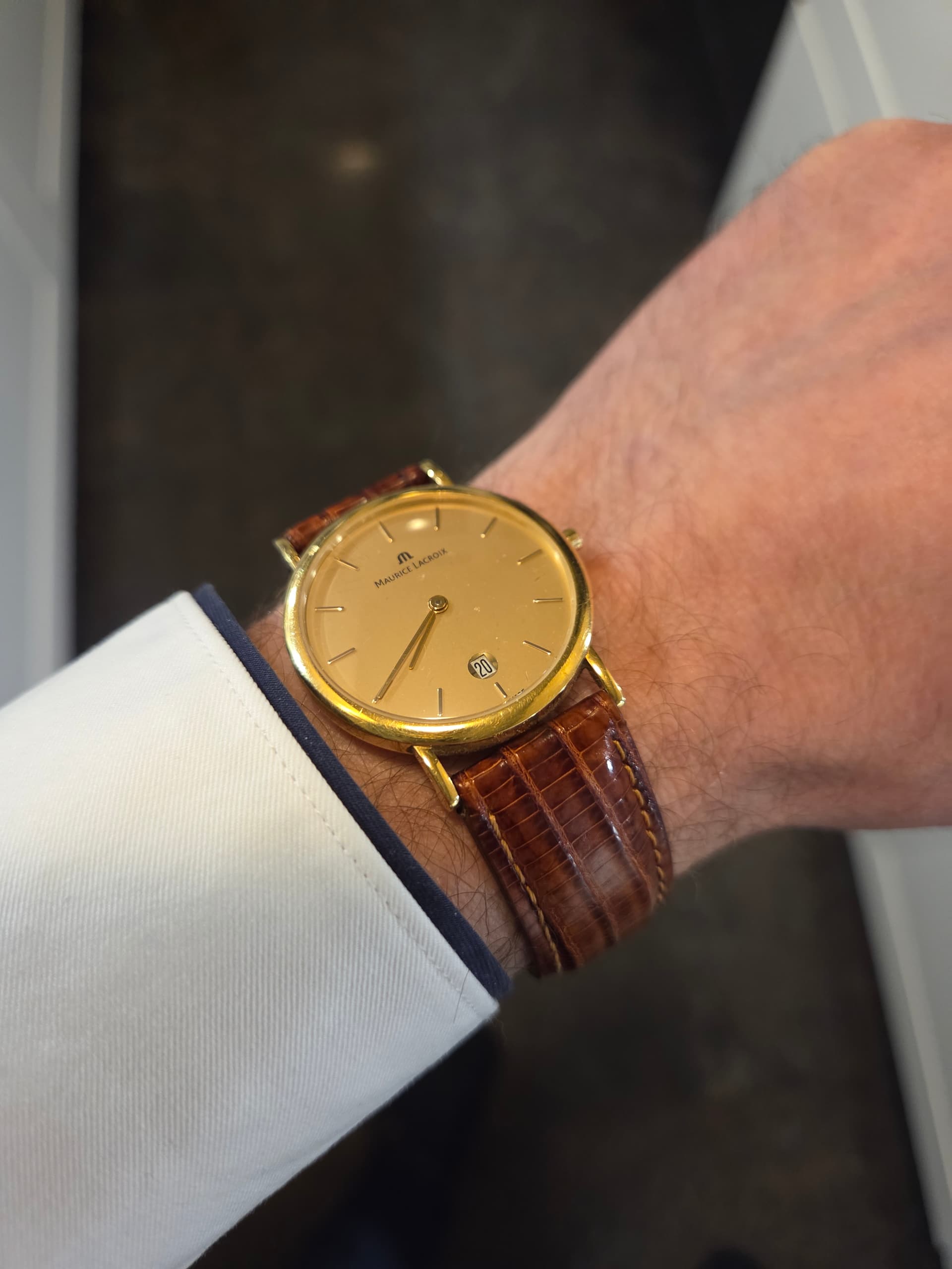 Vandaag mijn Maurice Lacroix weer eens aangedaan. Dit horloge is van mijn opa geweest, daarna heeft mijn vader hem gedragen en nu van mij.