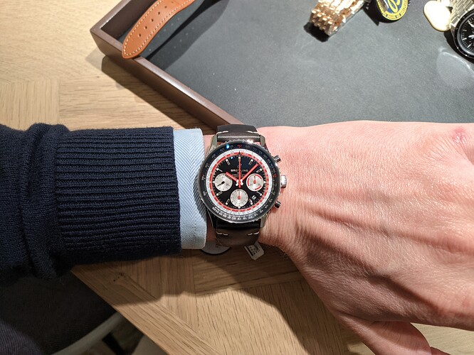Ik heb een aantal verschillende modellen gepast. De Premier 01 is fantastisch, maar doet bij mij toch niet hetzelfde als de Speedy en de Navitimer wel doen. De Navitimers waren er natuurlijk alleen in courante modellen, waarbij de 46 mm nog verrassend OK was en de 43 eerder dan 41 mm de sweetspot leek te zijn.