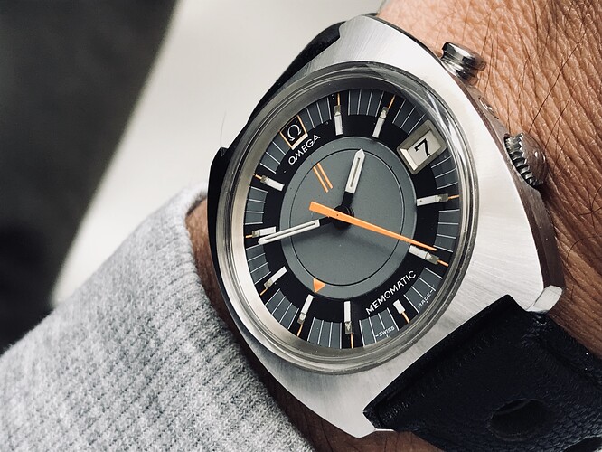Het gaat om een vintage Omega Memomatic. Ik heb ooit hetzelfde horloge gehad maar weer verkocht omdat ik fondsen nodig had voor de El Primero waar ik verliefd op was geworden.