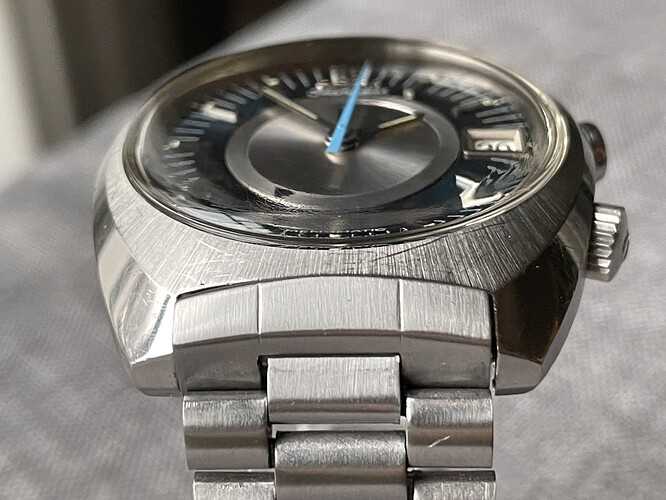 Een prachtig horloge, maar ik had hier een NOS kast voor gekocht en ze werd een museumstukje en belande veel te weinig op de pols. Ook was het stiekem een opvulling voor de leegte die mijn NA nu vult. Het juiste model, de juiste kast en de juiste band.