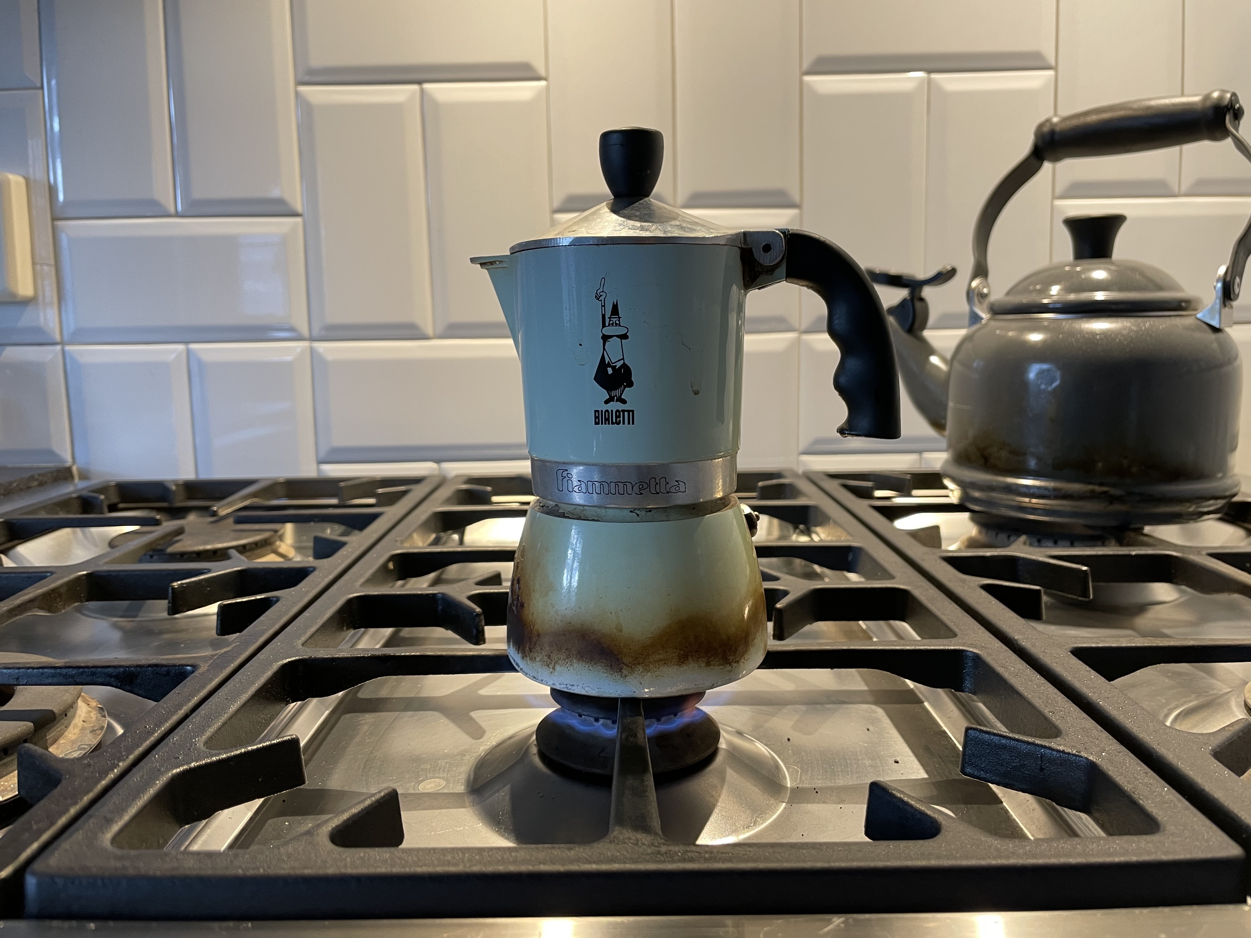 Zoals het hoort een bakkie koffie gemaakt met de Bialetti, en alle Corona- kleinoden klaargelegd.