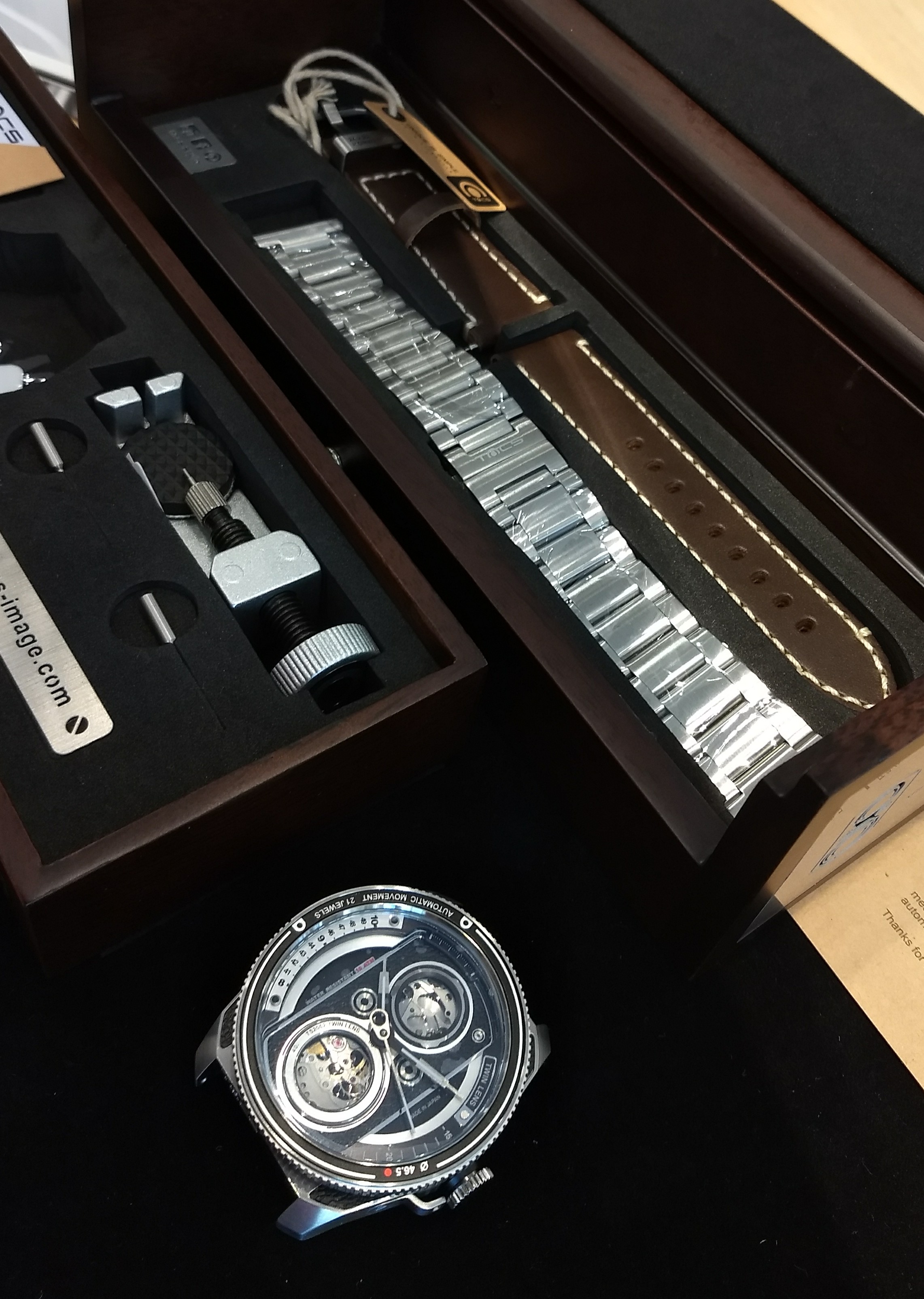 Ik heb gewoon minuten lang naar je eerste afbeelding zitten kijken en me af zitten vragen hoe je daar in 's hemelsnaam de tijd op afleest. Een puzzel, 'n mysterie. Toen kwam ik erachter dat ik naar de caseback zat te kijken…