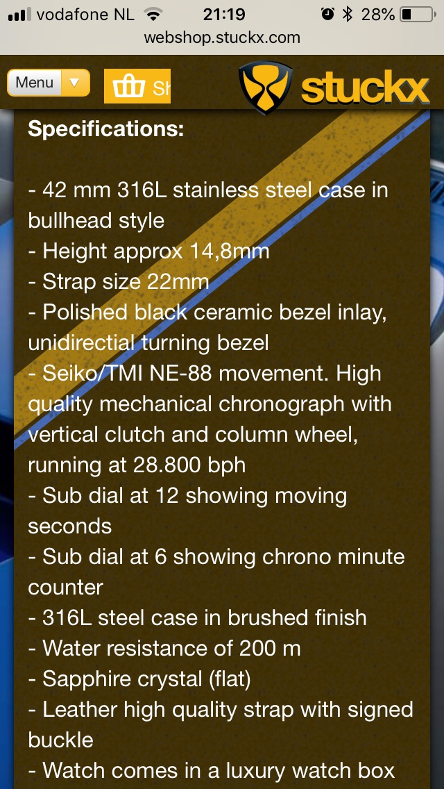 Ik heb er een mooie van met een column wheel automaat uurwerk van Seiko 8R28 (ook wel bekend als NE88) de Stuckx Bull Panda automatic