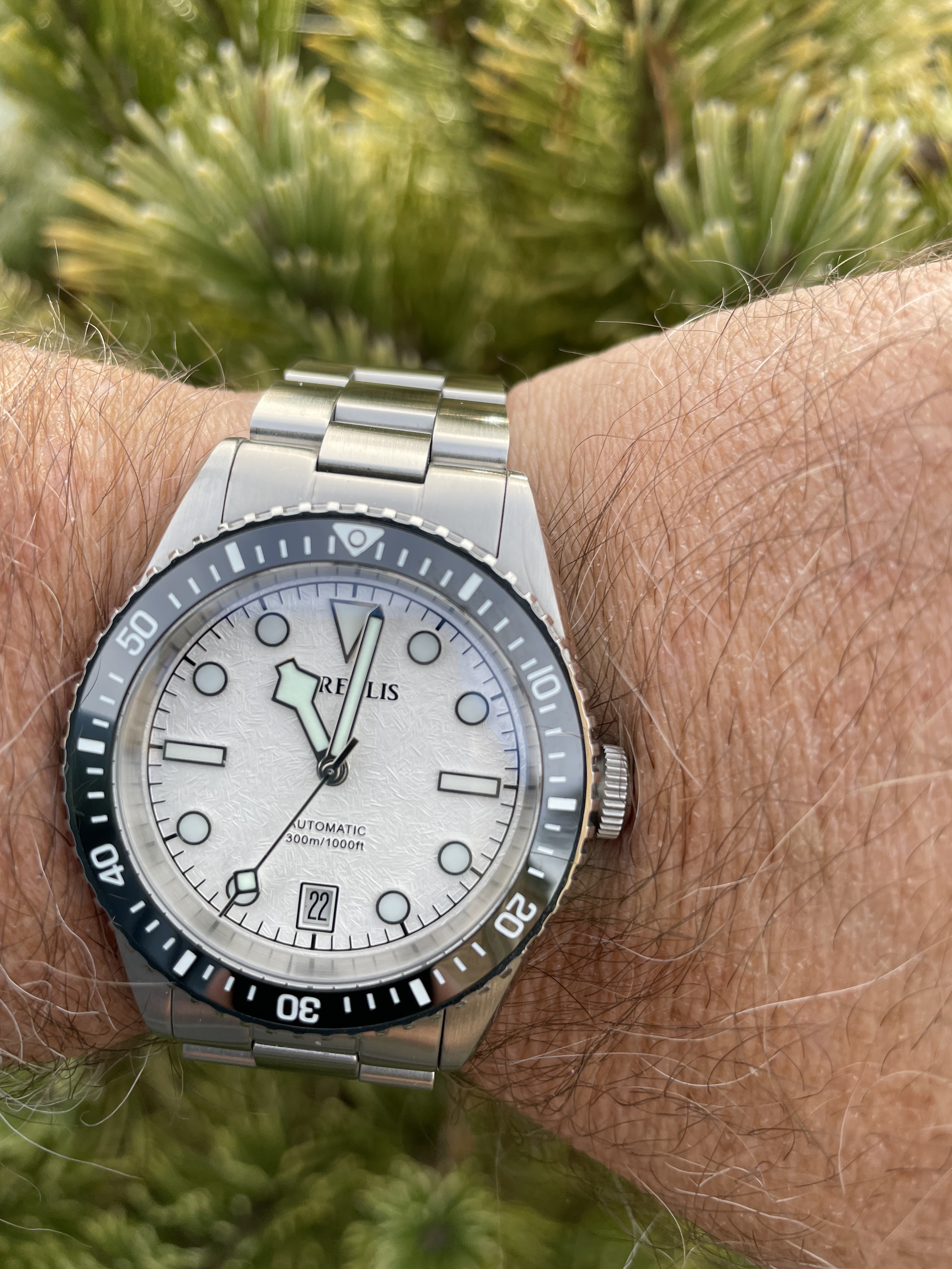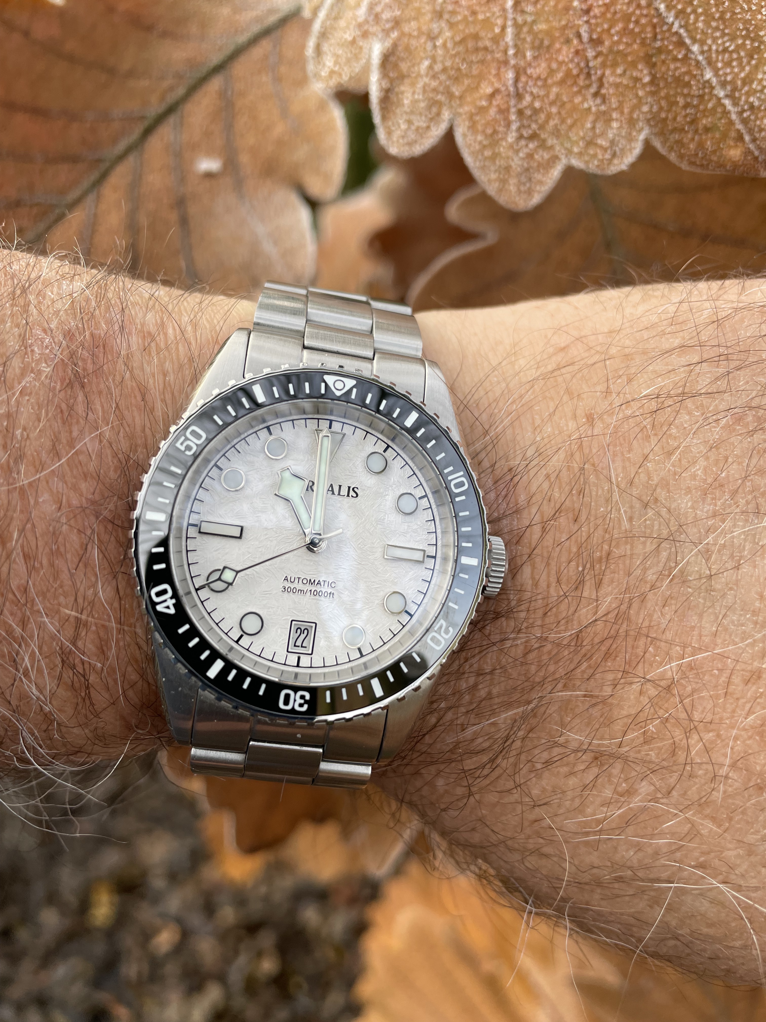 Voelt heel goed, degelijk en goed afgewerkt. Duurzaamheid en krasgevoeligheid kan ik nog niets over zeggen. Blijft verrassend nauwkeurig lopen wel - heb 'm nog niet bij hoeven zetten. Vind zelf dat witte end op de secondewijzer leuk en de afleesbaarheid is fenomenaal (lume is ook goed). Tot op heden geen minpunten kunnen ontdekken, behalve dat ik niet kan kiezen welke band…